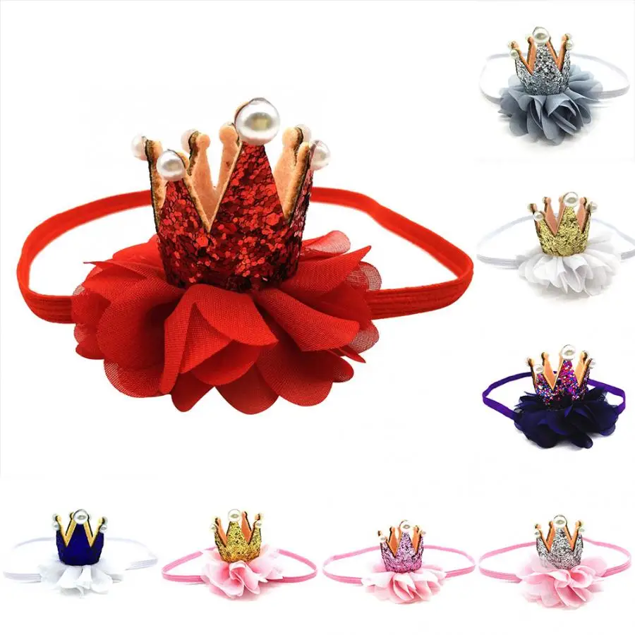 Детская повязка на голову для маленьких девочек; аксессуары для волос с цветами и короной; головной убор