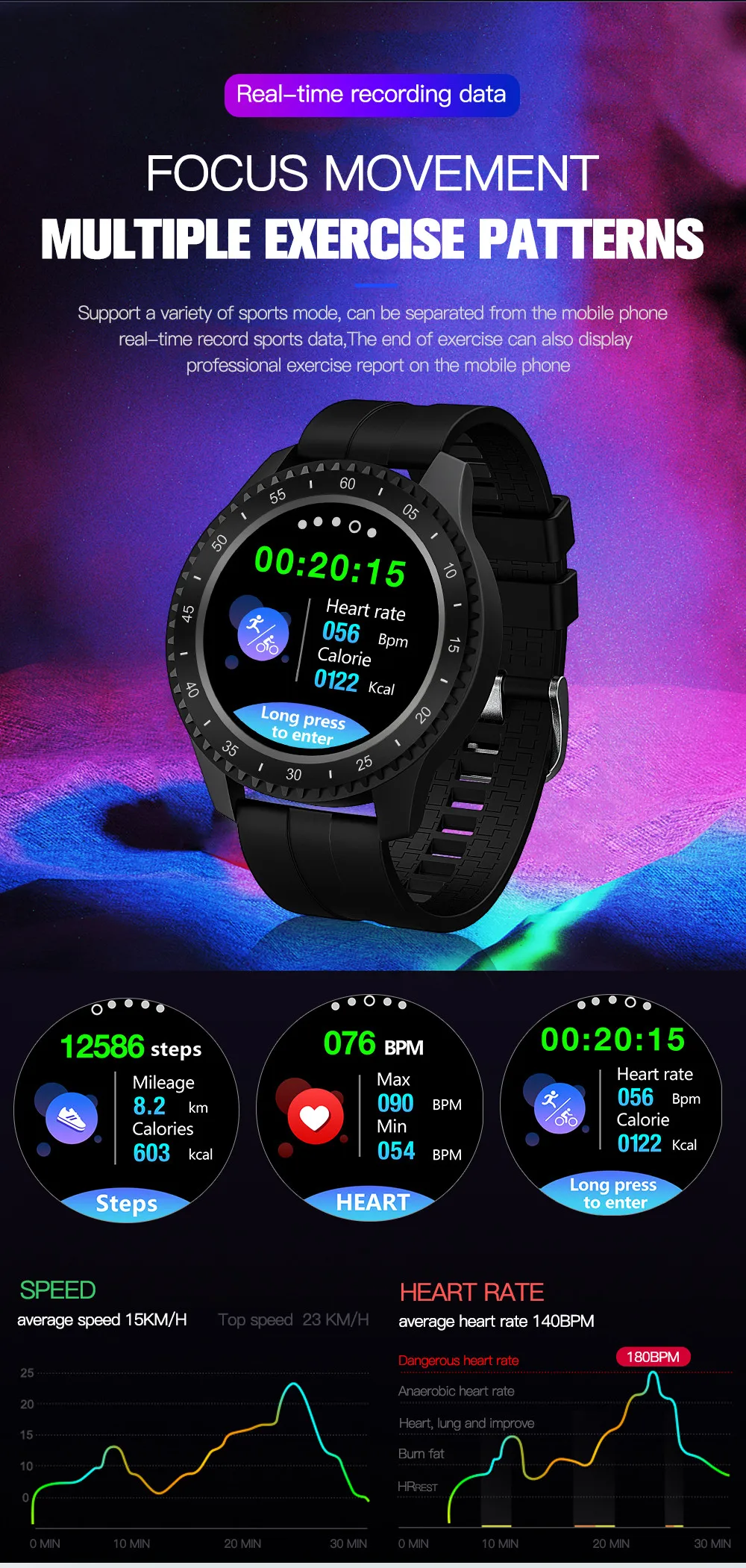 Основные характеристики: мониторинг сердечного ритма, артериального давления, кислорода в крови, шаг, расстояние, калории, несколько режимов упражнений, мониторинг сна, напоминание о звонках (номер звонящего/имя), напоминание о сообщениях, прогноз погоды, напоминание о тревоге, напоминание о потере, напоминание о сидячем положении, поднятие экрана запястья, дистанционное управление и т. д. Операционная система приложения: IOS9.0 или выше, Android4.4 или выше Датчик: SC7A20 (Slan Micro) Мастер: HS6620D (Han Tianxia) Датчик частоты пульса: HRS3300 (天易合芯) Напоминание вибрацией: двигатель напоминание вибрацией Водонепроницаемость: IP68 APP поддержки, работающий от батареи наружные беспроводные Язык экранного меню чжунцзянь, zhongfan, датский, чешский, Пособия по немецкому языку, итальянский, польский, португальский, тайский, шведский, финский, голландский, португальский, немецкий, английский, корейский, испанский, японский, французский, русский, итальянский, чешский, испанский арабский, украинский, вьетнамский, болгарский, Латвийский, букмол, норвежский, хинди, Лиза, вьетнамский, Размеры: 1,54 дюймов 240*240 точек на дюйм Тип: на тонкопленочных транзисторах на тонкоплёночных транзисторах Bluetooth: BLE 4,0 Материал ремешка: силиконовый ремешок Цвет, цвета: черный, зеленый, голубой, розовый, фиолетовый, белый, красный, оранжевый Другое операции: Полный сенсорный экран Батарея: полимерный литий-ионный аккумулятор Батарея Емкость аккумулятора: 170 мАч Время работы в режиме ожидания 7-10 дней Метод зарядки: USB кабель для зарядки с магнитным креплением Время зарядки: около 2 часовОчень долго искала такое платье, хотелось что-то простое но интересное, и вот наткнулась на него, заказала, спасибо за быструю доставку.... Читать отзыв полностью...