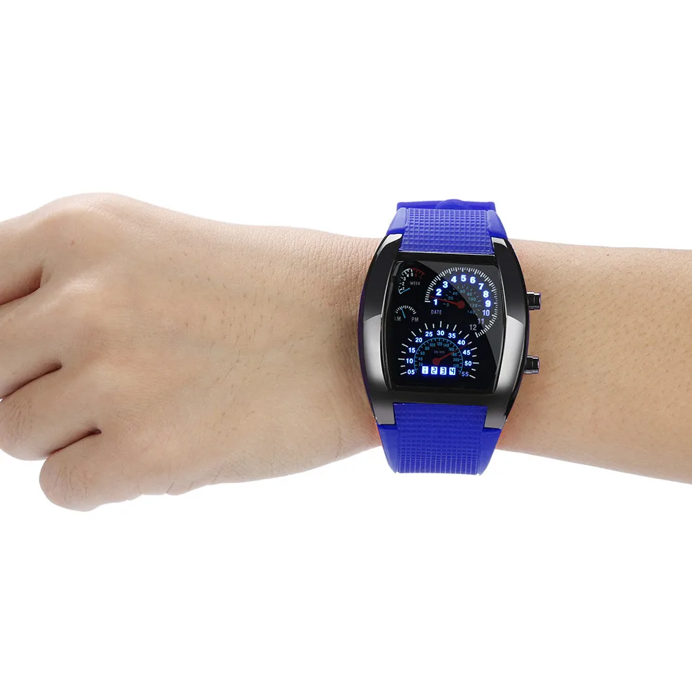 Цифровой светодиодный спортивные часы имитирует внешний вид Автомобильный спидометр