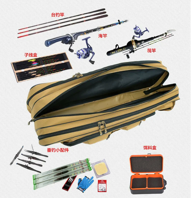 80-120cm Waterproof Fishing Bag 2-3 Layer Large Capacity Thick Nylon Wearproof Fishing Tackle Bag Outdoor Fishing Accessory Bags