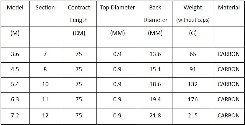 1. Угольный стержень 2 .. Термоусадочная длина 75 см 3. Размер 3,6 метров-7,2 метров 4. Телескопическая портативная удочка 5,19 Супер жесткий Посылка включает в себя: 1 Удочка + запасные 3 части + подарки