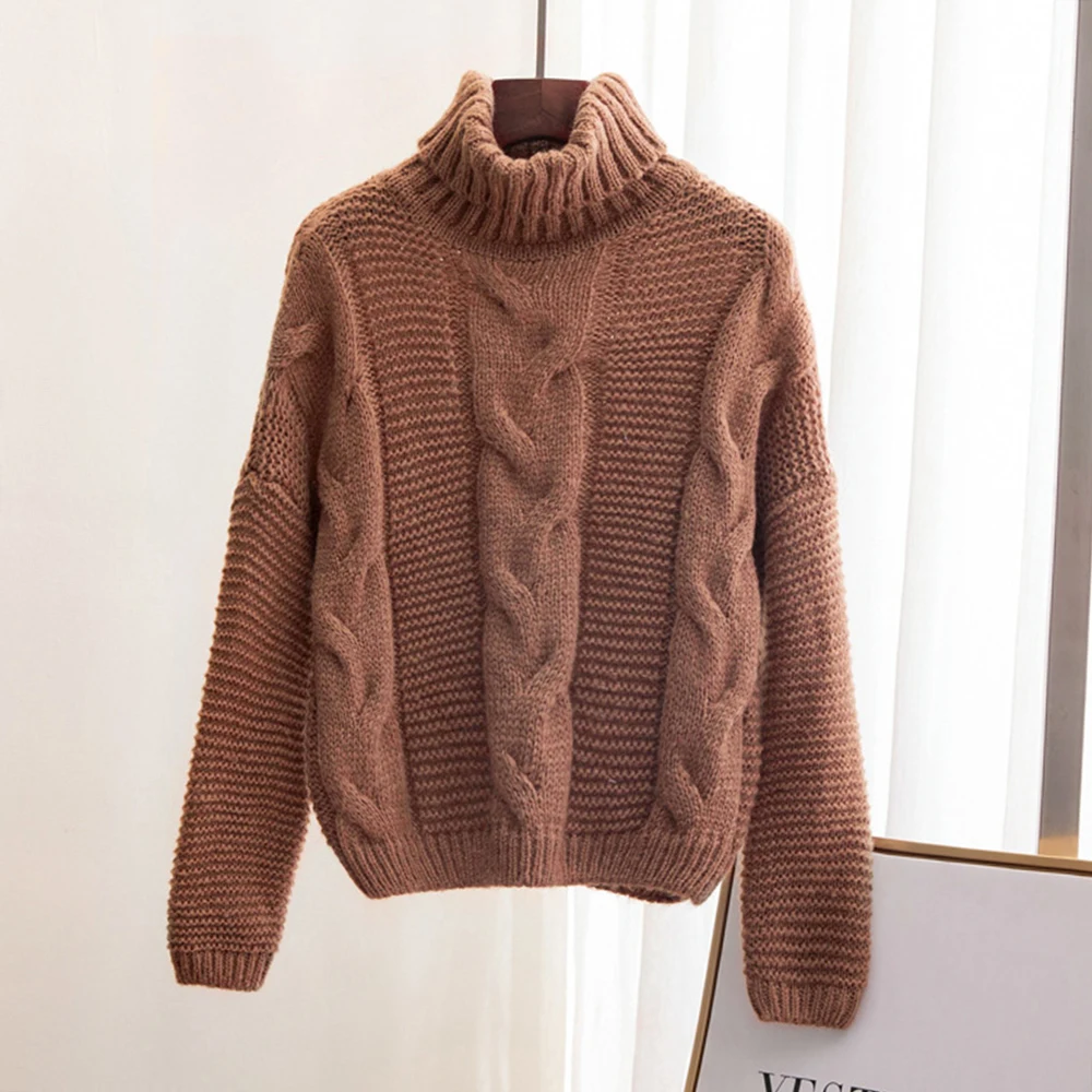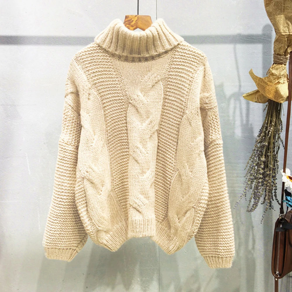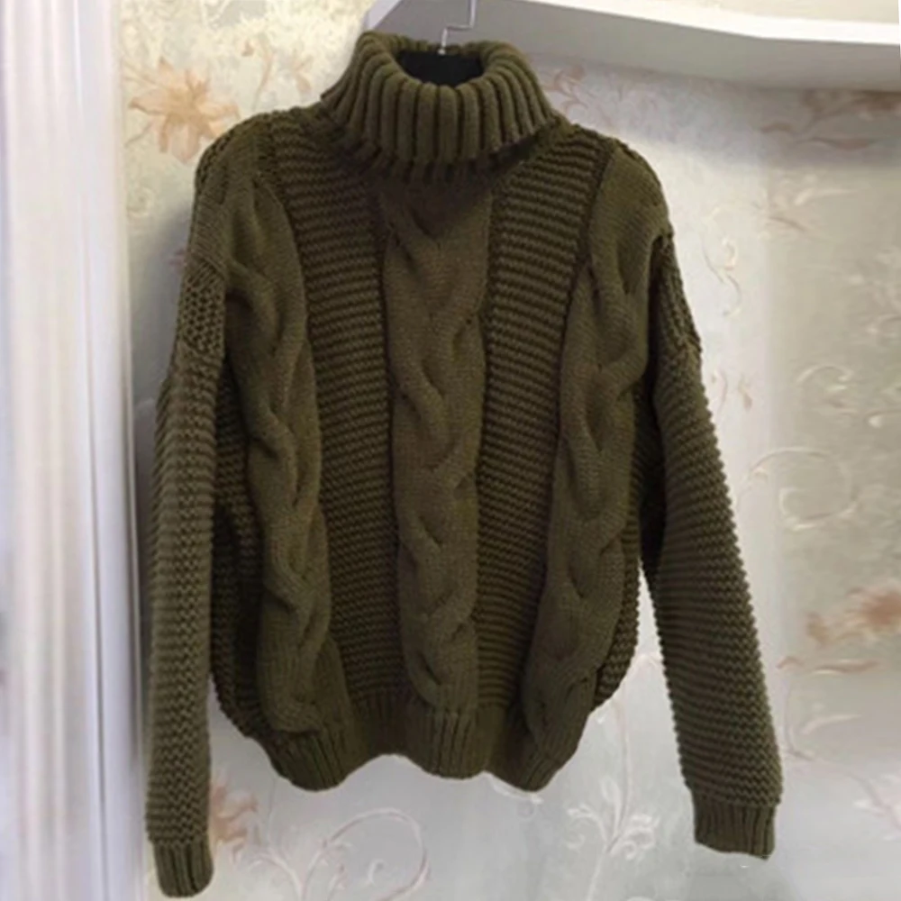 Особенности: свитер с длинными рукавами и высоким воротником. Красивая вязаная одежда в рубчик