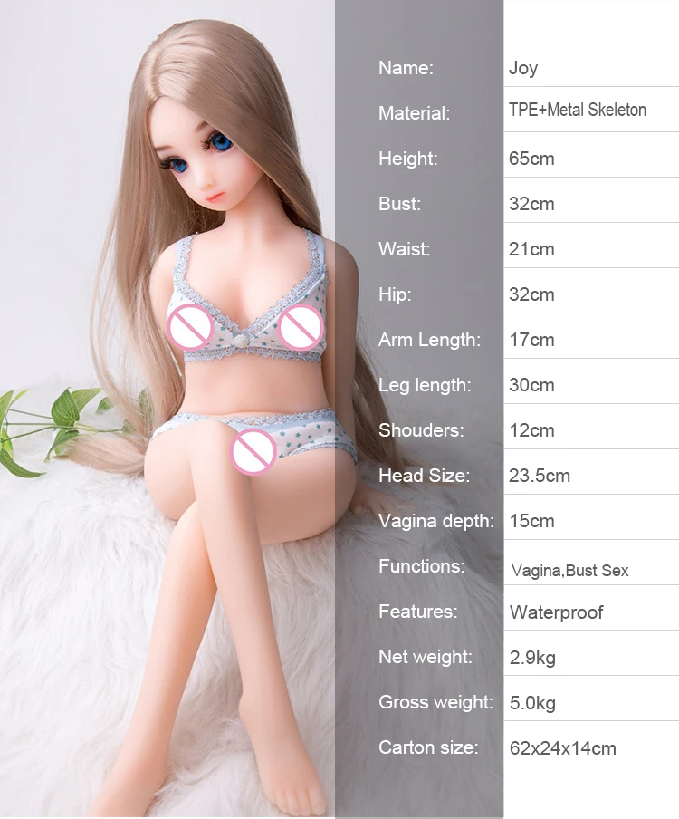Бесплатная доставка, секс кукла для лица младенца, маленькая грудь, секс кукла, силикон, 65 см, секс кукла для человека Мы обещаем: вы получите 100% такой же, как на изображении куклы ниже. Высота: 65 см Материал: Медицинский ТПЭ + металлический каркас Грудь: 32 см Талия: 21 см Бедра: 32 см Плечо: 12 см Длина ноги: 25 см Длина стопы: 7 см Глубина влагалища: 15 см Вес нетто: 2,9 кг Вес брутто: 5 кг Размер посылка: 62*24*14 см