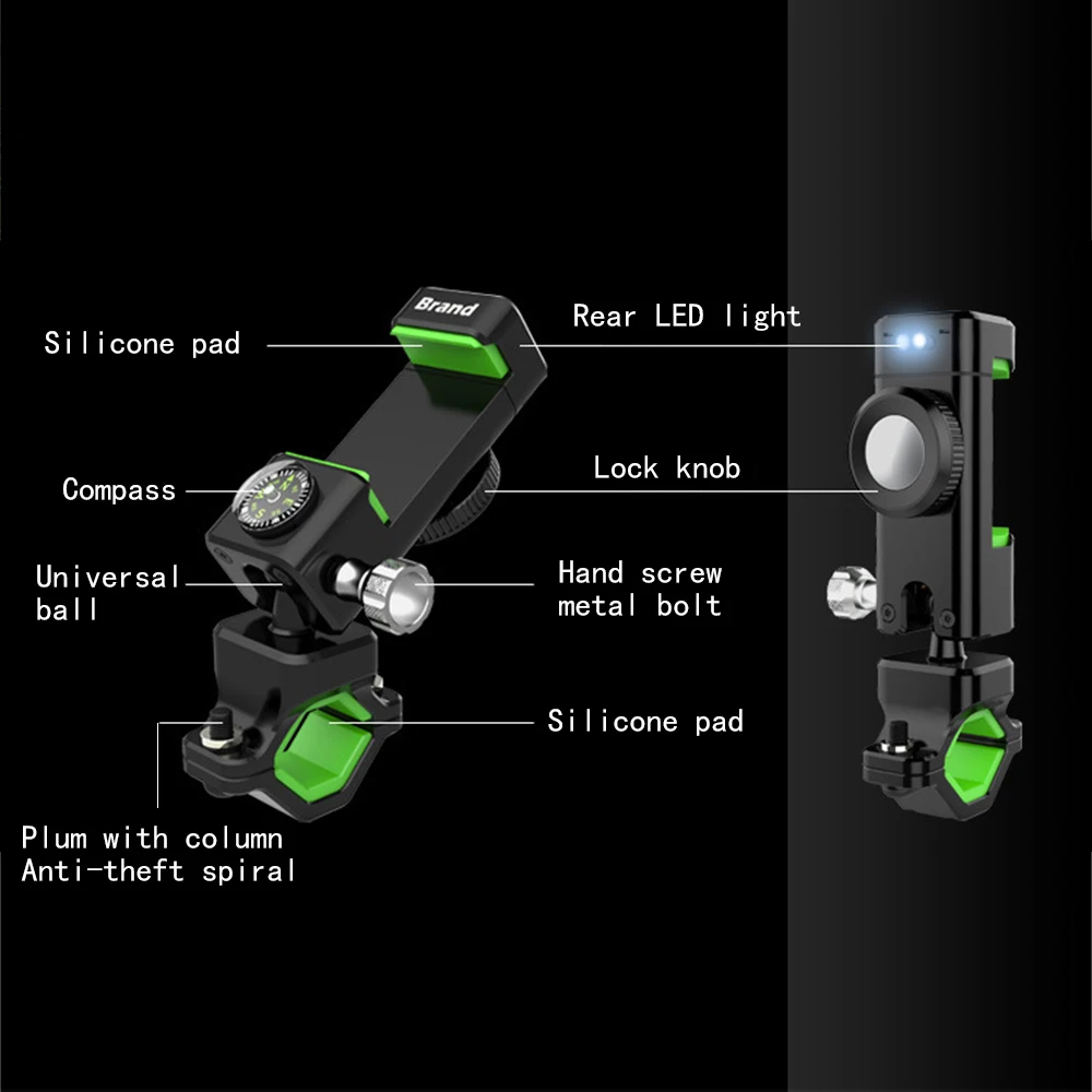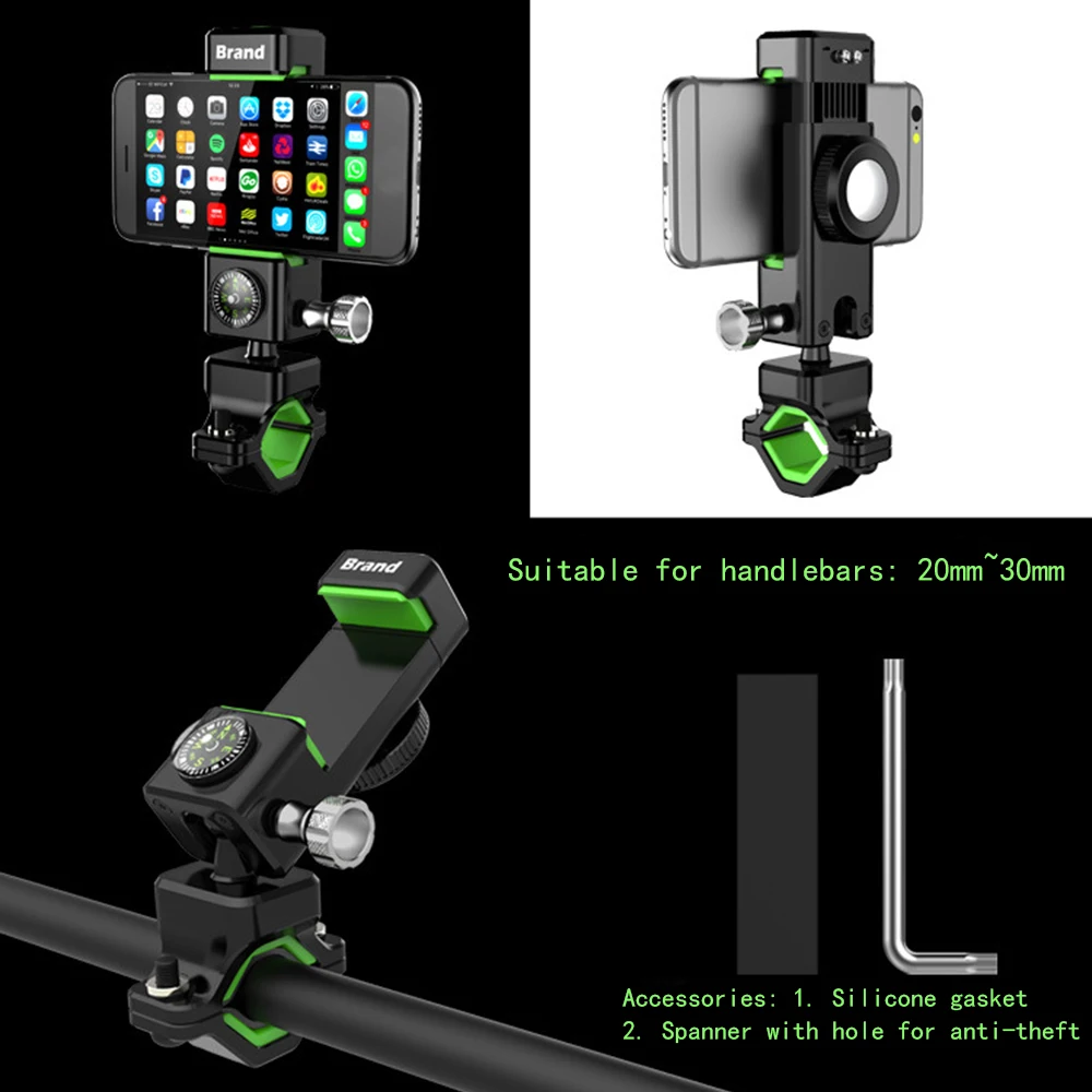 Универсальный электровелосипед мотоцикл руль мобильного телефона держатель для горного велосипеда велосипедная подставка Опора с зажимом светодиодный свет и компас 35