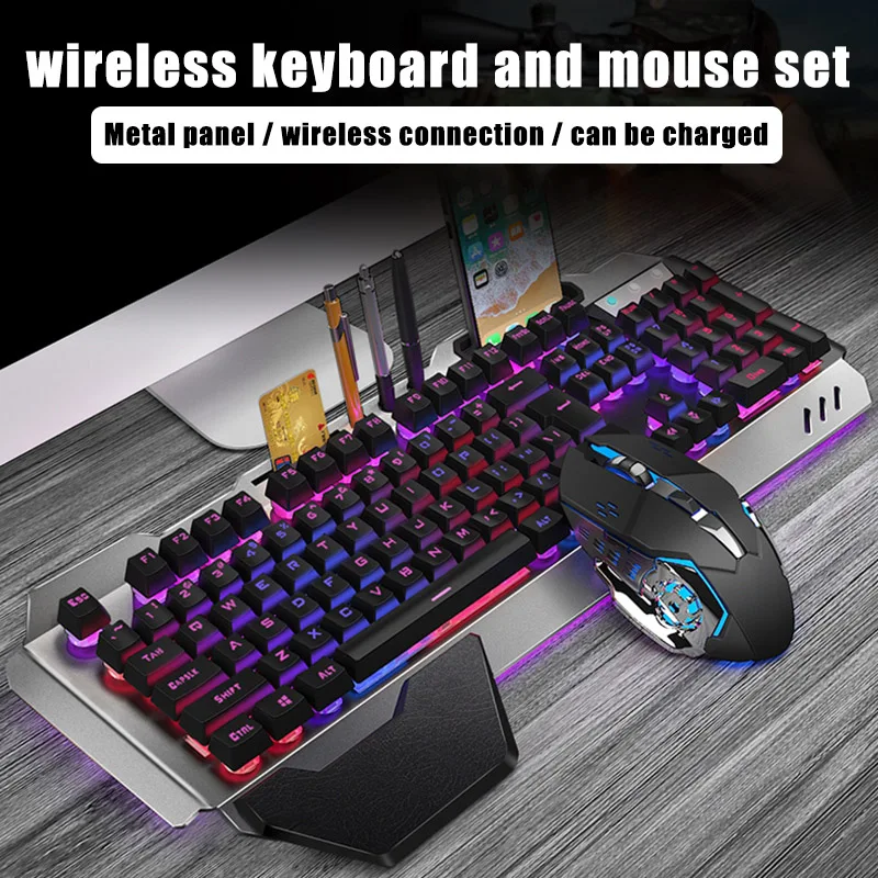 Высококачественная игровая клавиатура, набор мыши, перезаряжаемая беспроводная клавиатура с красочными лампами, мышь с 4 регулируемыми DPI