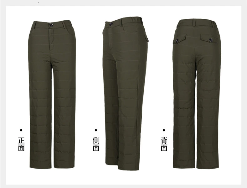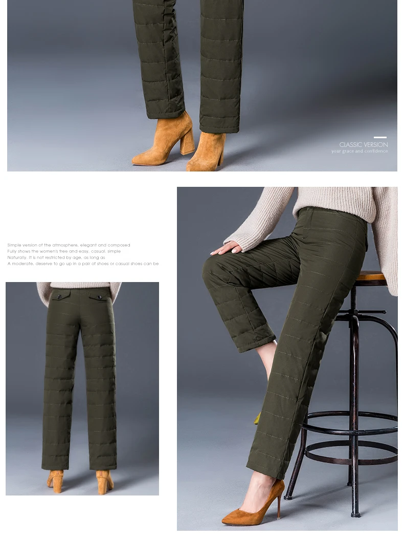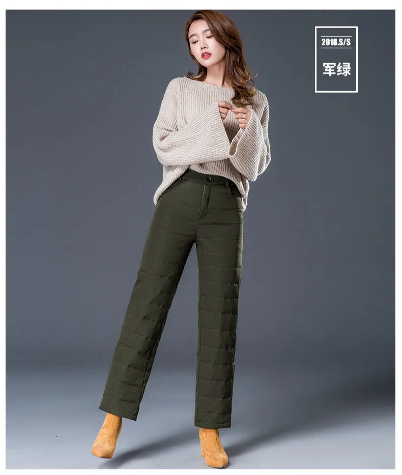 Женские широкие брюки с высокой талией, зимние уличные теплые ветрозащитные прямые брюки на 90% белом утином пуху, теплые брюки