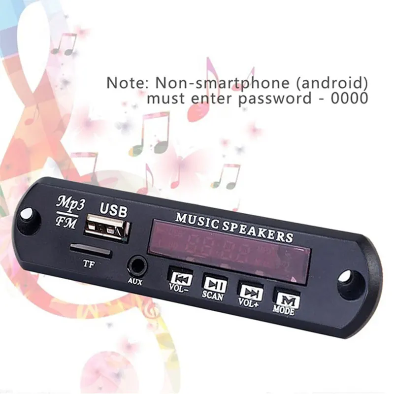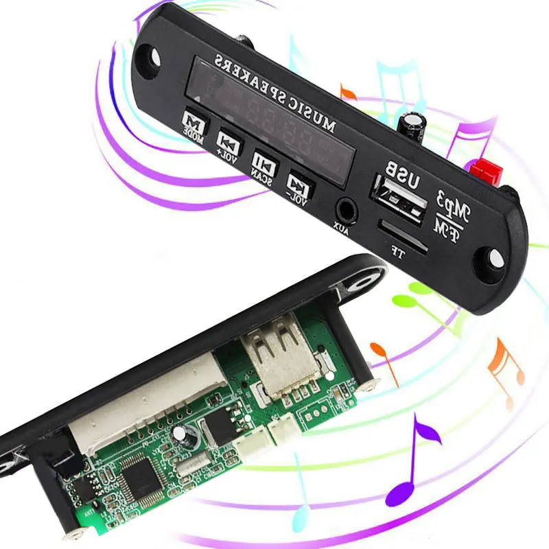 -Одинарное декодирование, Поддержка музыки в формате MP3; -Цифровым дисплеем; -Поддержка карт MMC/SD/MMA, поддержка интерфейса USB (U диск); -Поддержка Радио FM, радиочастотный диапазон (87,5 МГц-108,0 МГц); -Функция отключения памяти 24C02; -Поддержка 5-10 метров инфракрасного дистанционного управления; -Поддержка внешней аудиовхода в (AUX); -Клавиши: четыре кнопки многонаправленного управления VOL-/AUTO/VOL +/MODE.