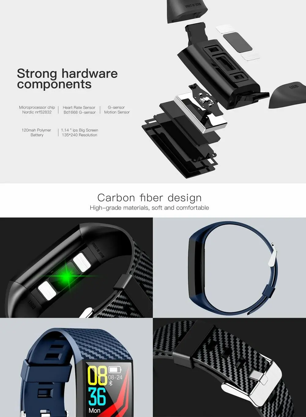 Спецификация:Датчик сердечного ритма: Huajing BD1668
