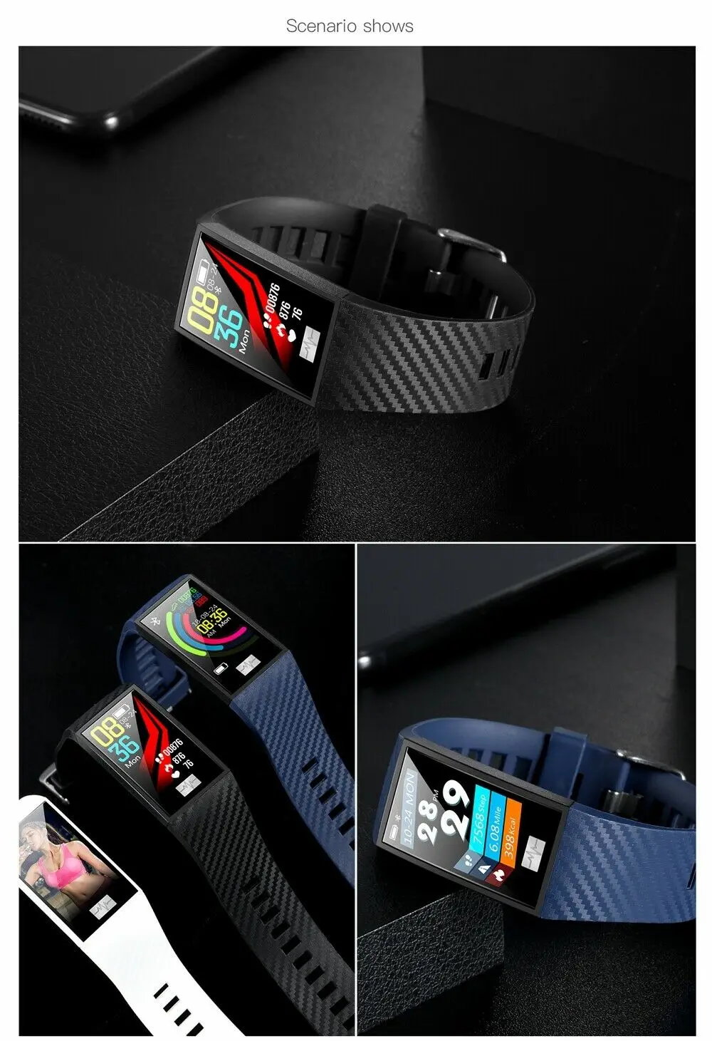 Цвет ремешка: черный, синий, белый