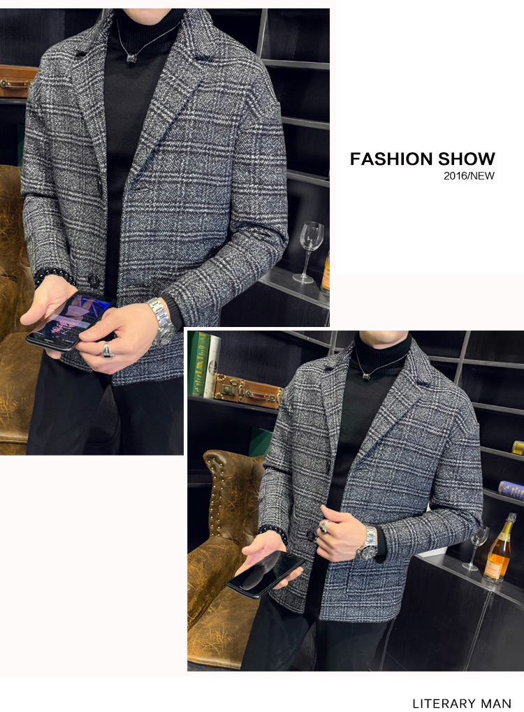 Новое шерстяное пальто мужское короткое приталенное осеннее...