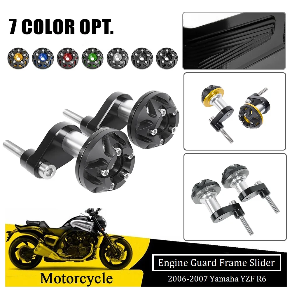 CNC Aluminium Body Frame Protector Engine Guard Frame Slider Stator Cover Protector for 2006 2007 Yamaha YZF R6 YZF-R6 YZFR6 Fairing Protector Falling Protection Motorcycle Accessories Parts
