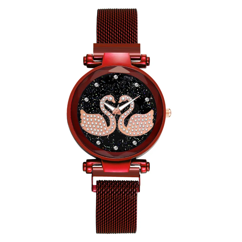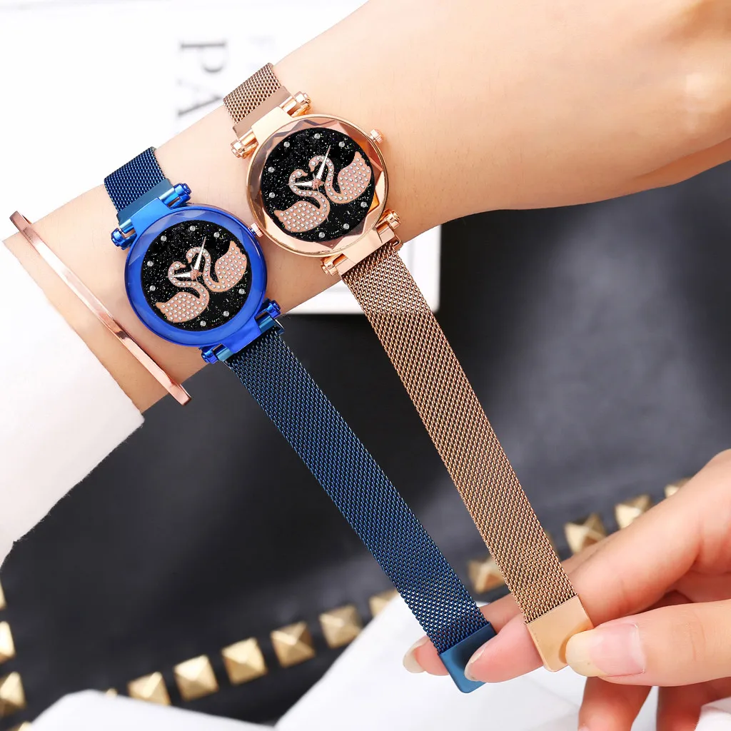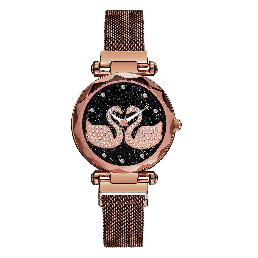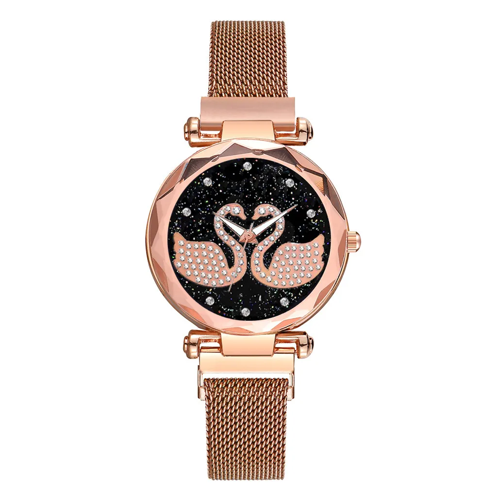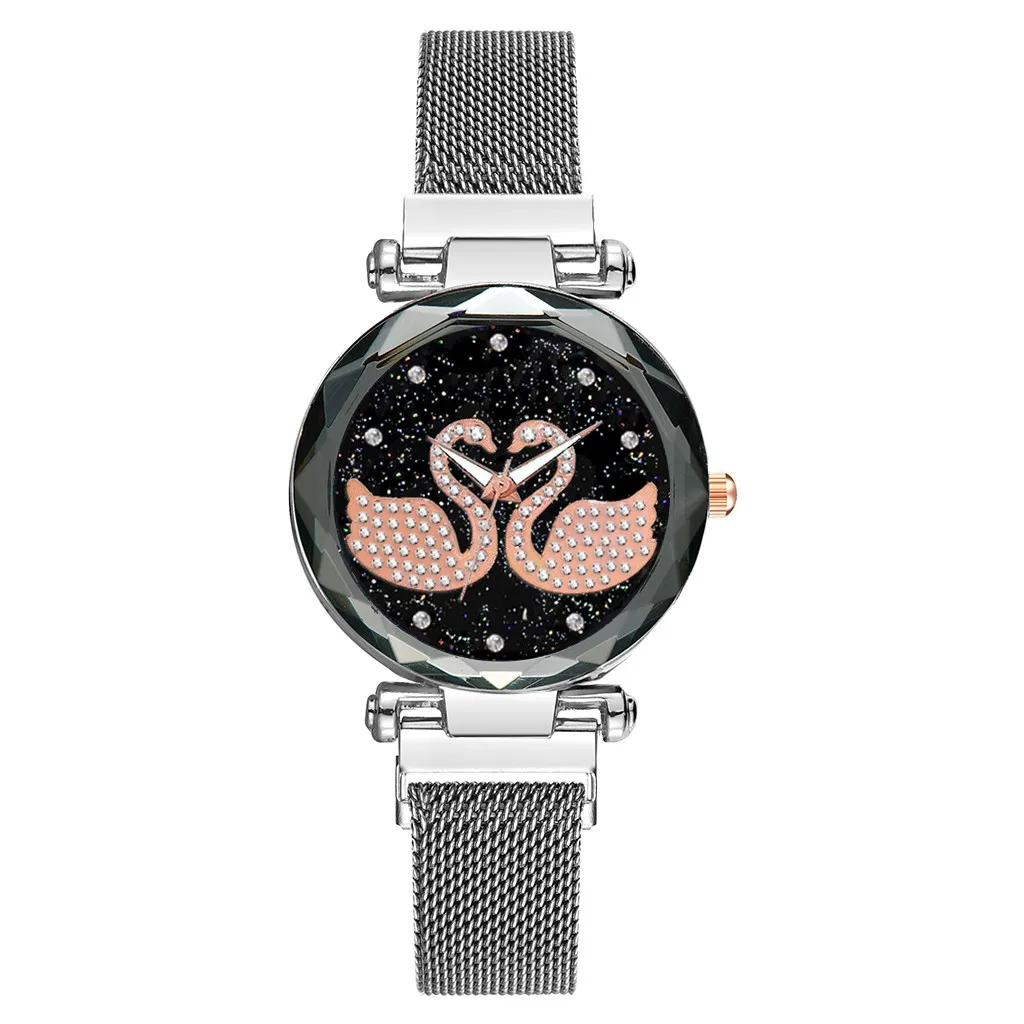 Камень Лебедь циферблат часы для женщин свет роскошный магнит алмаз Леди передачи часы кварцевые повседневные женские часы Relogio Feminino