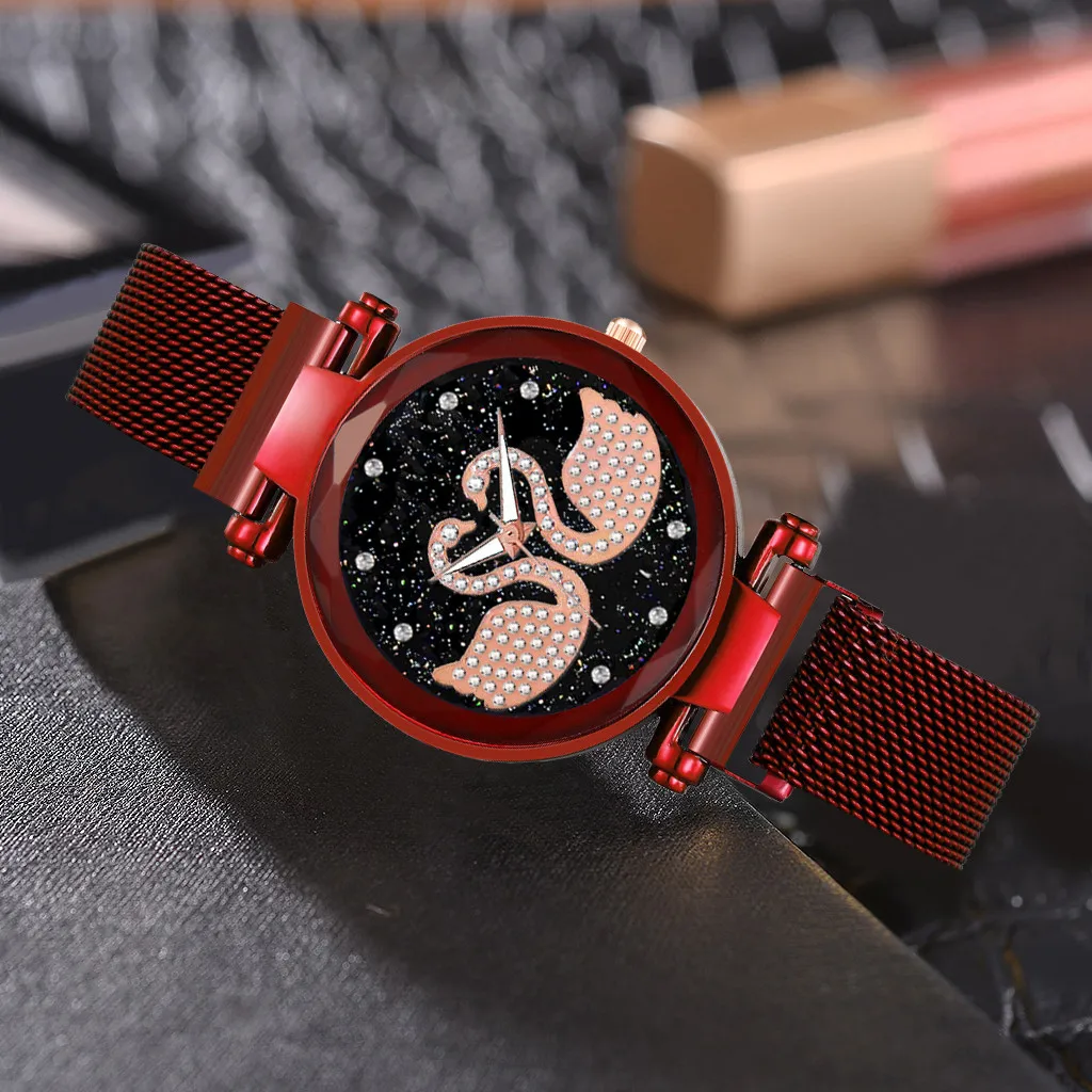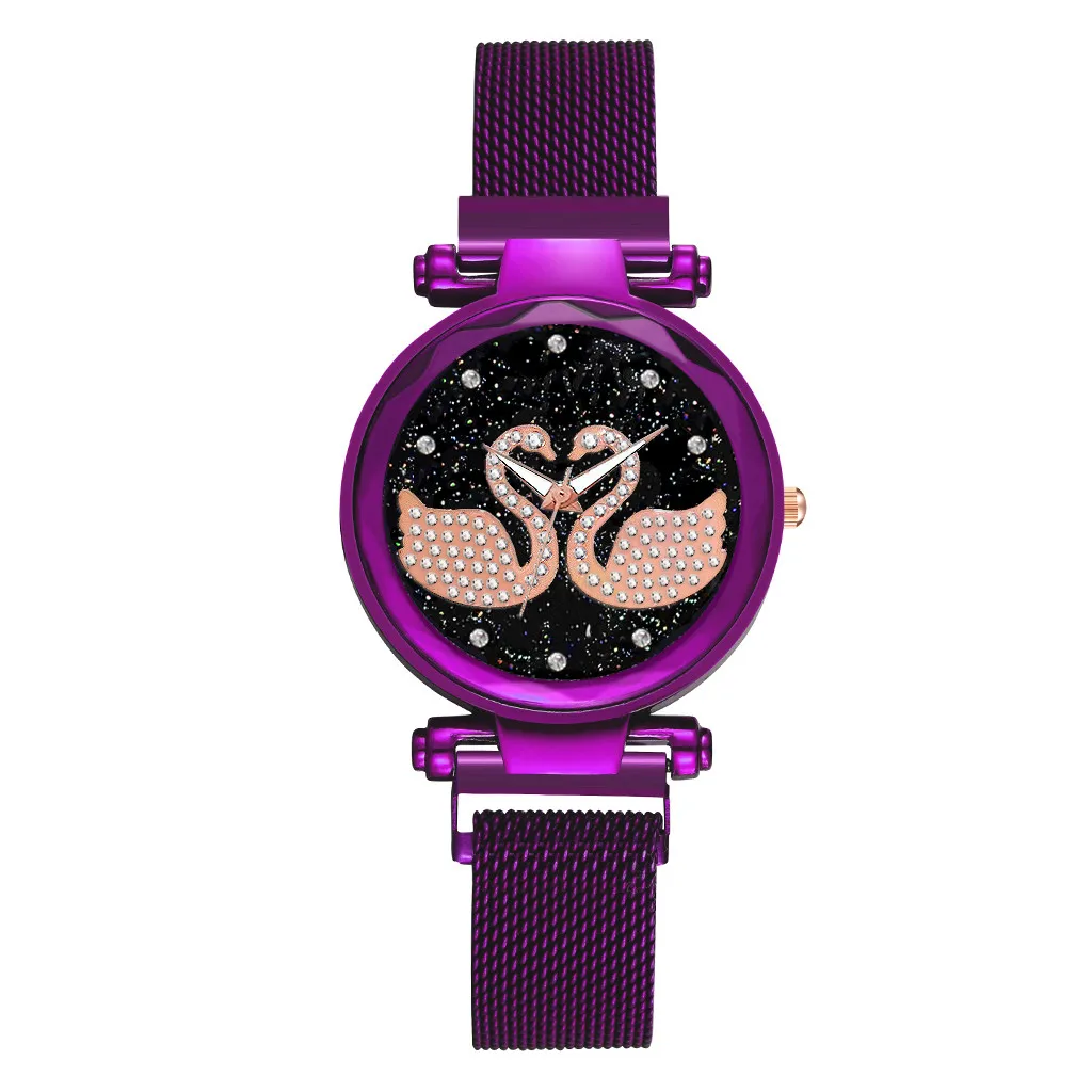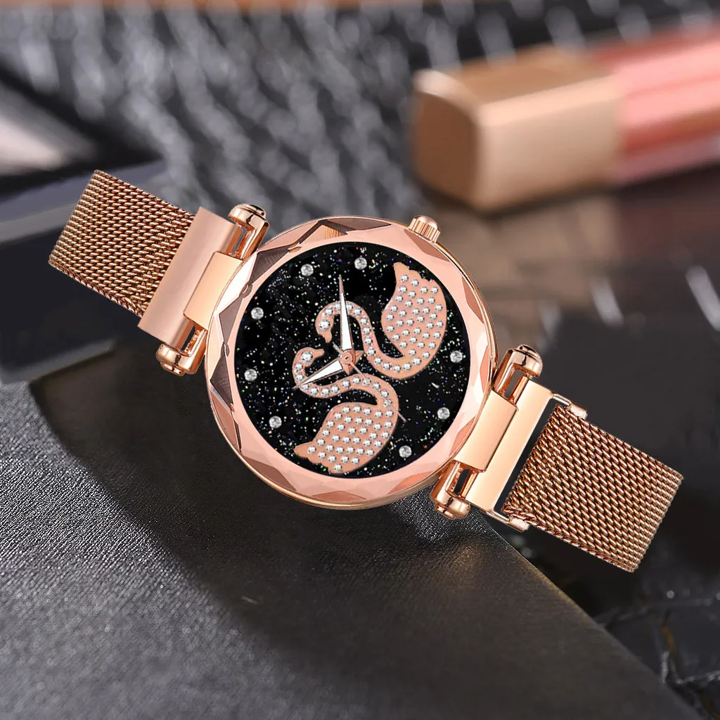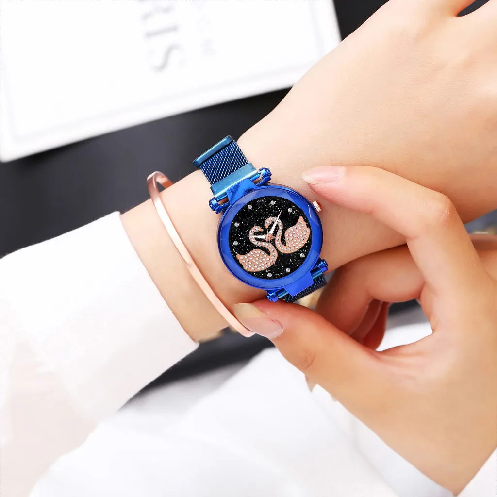 Камень Лебедь циферблат часы для женщин свет роскошный магнит алмаз Леди передачи часы кварцевые повседневные женские часы Relogio Feminino