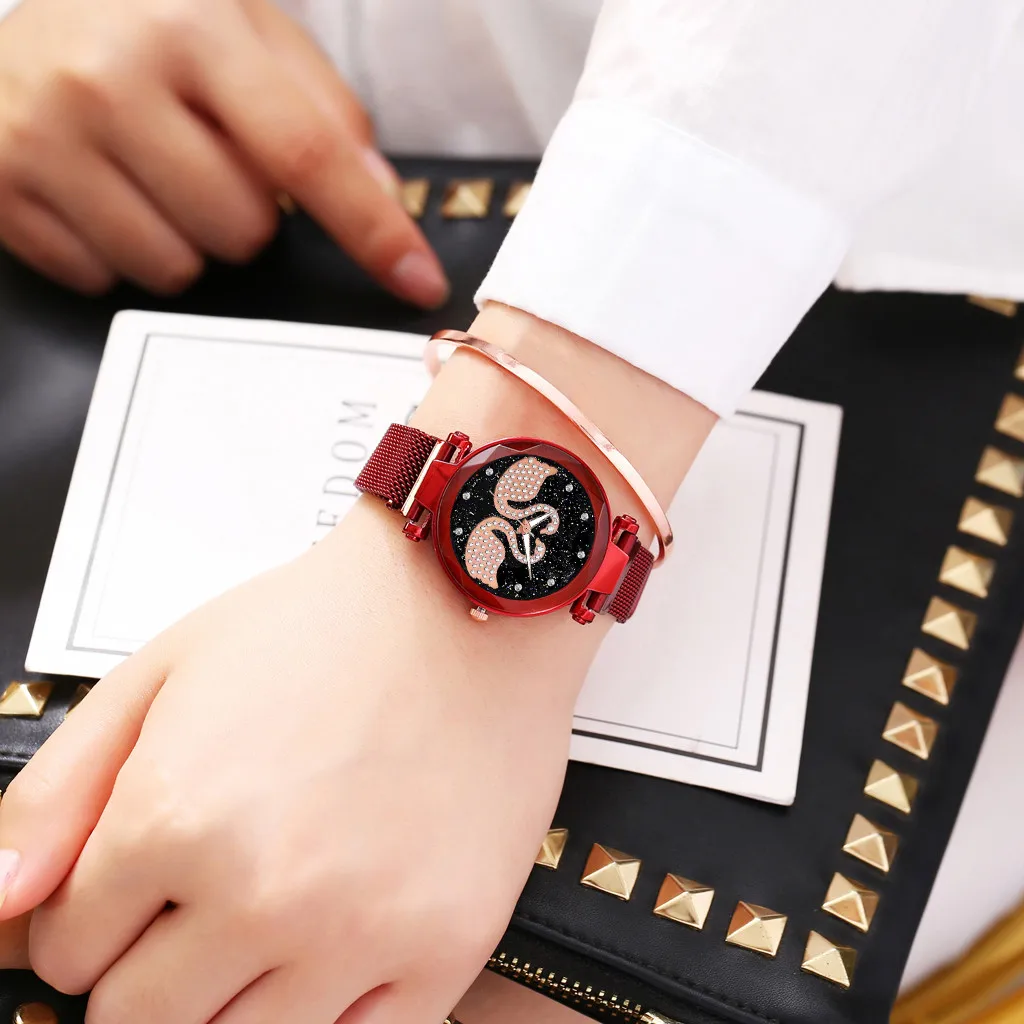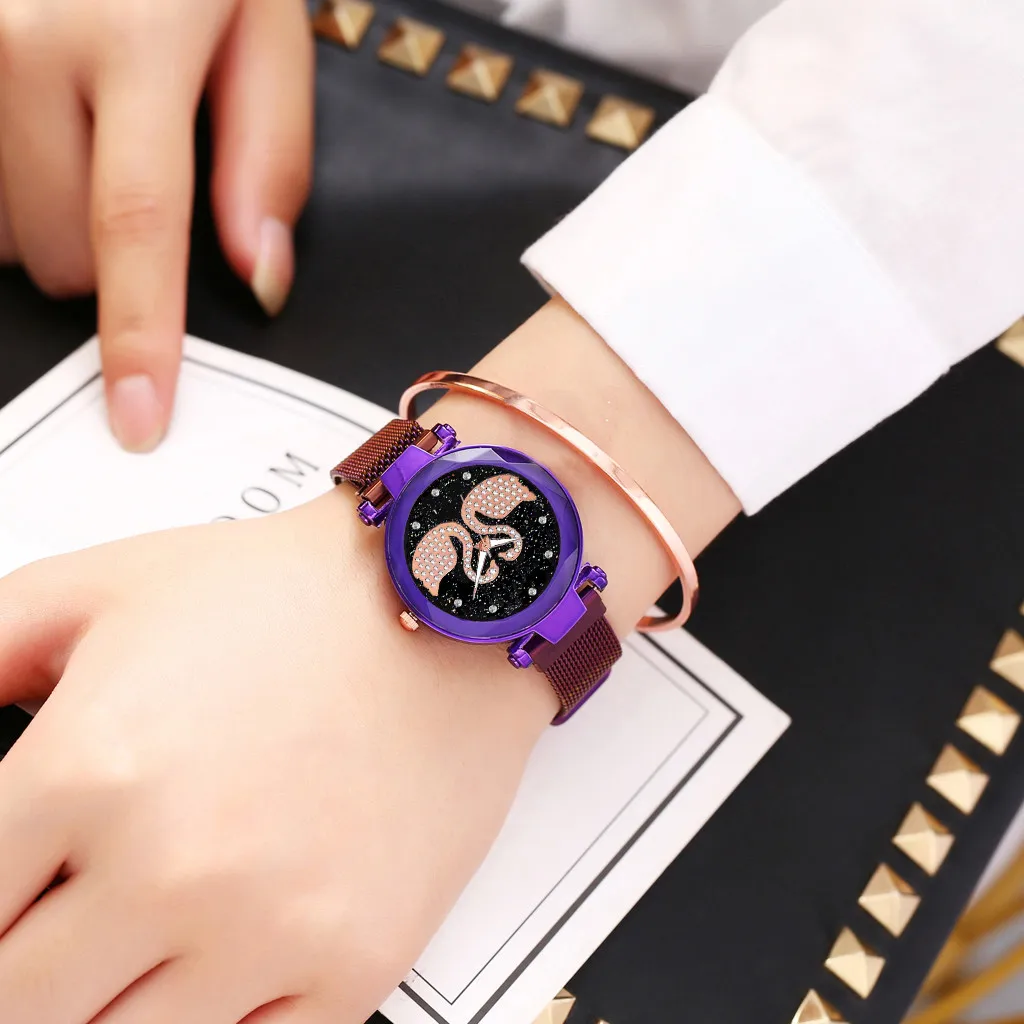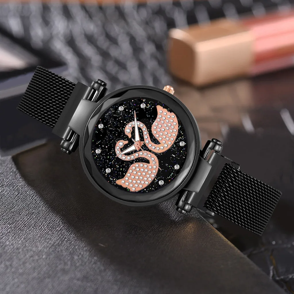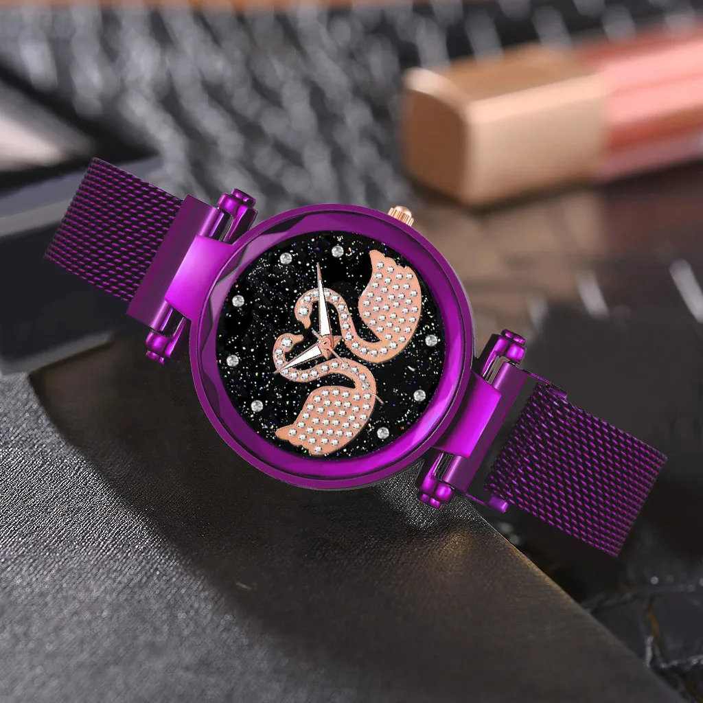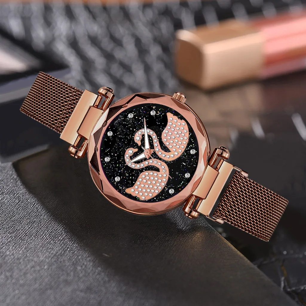 Камень Лебедь циферблат часы для женщин свет роскошный магнит алмаз Леди передачи часы кварцевые повседневные женские часы Relogio Feminino