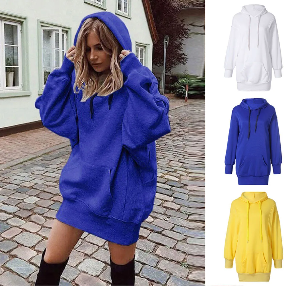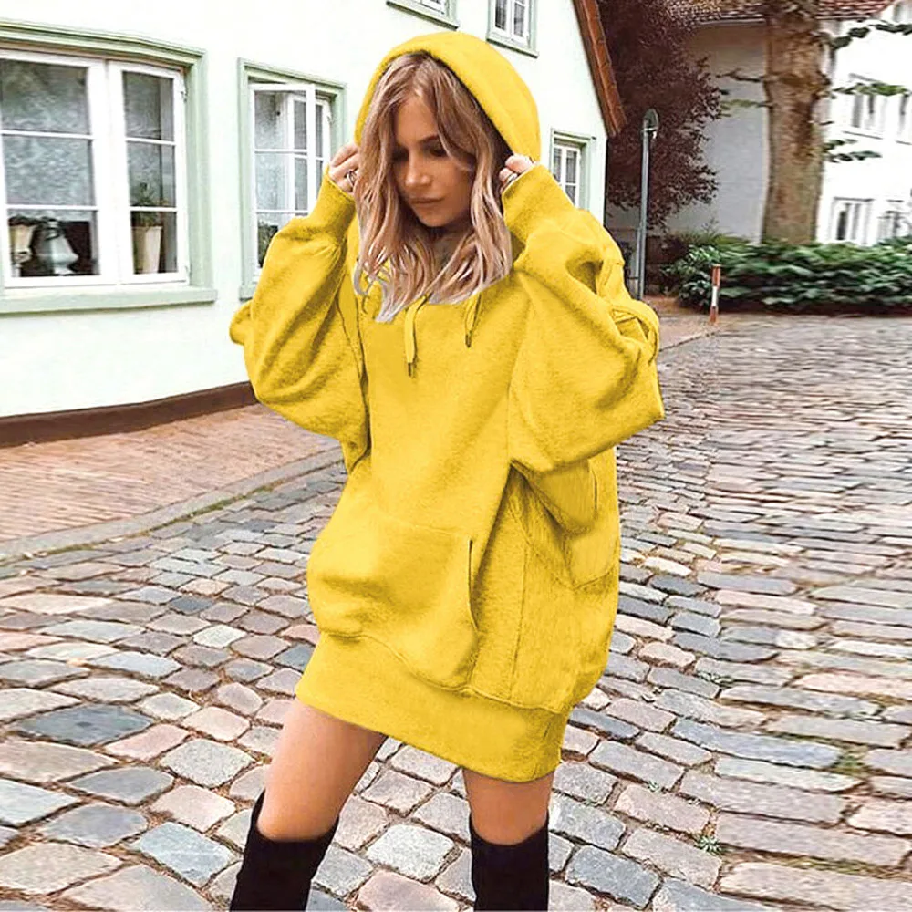 Женская модная однотонная одежда с капюшоном, пуловер, пальто, толстовка с капюшоном
