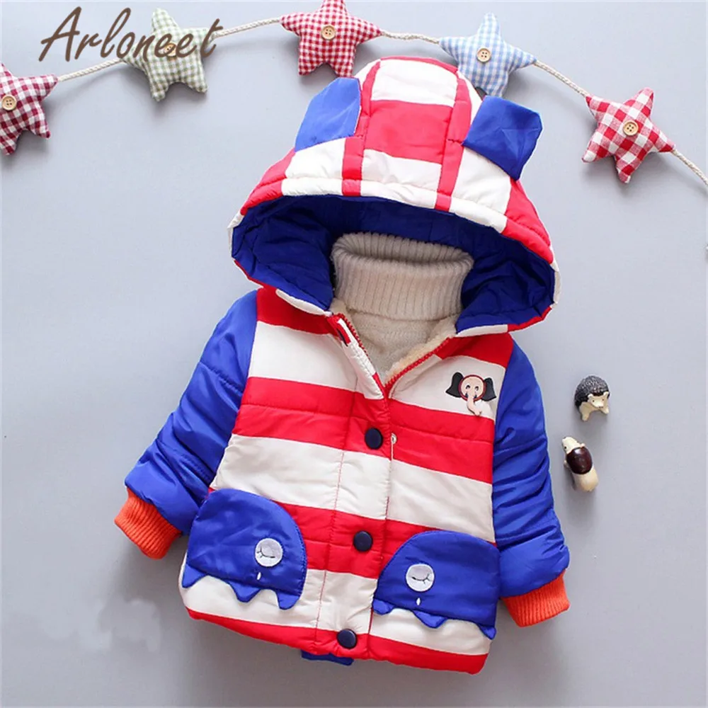ARLONEET/пальто с героями мультфильмов теплое зимнее плотное пальто для маленьких девочек верхняя одежда с капюшоном и принтом слона для мальчиков пальто Одежда для девочек ясельного возраста
