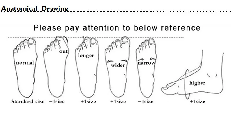 1. Измерения-это максимальный размер,Допустимая погрешность около ± 5 мм. Перед оформлением заказа внимательно сравните таблицу размеров с длиной Вашей стопы.