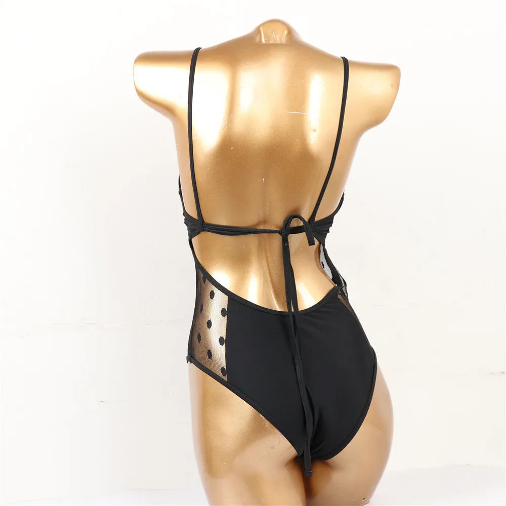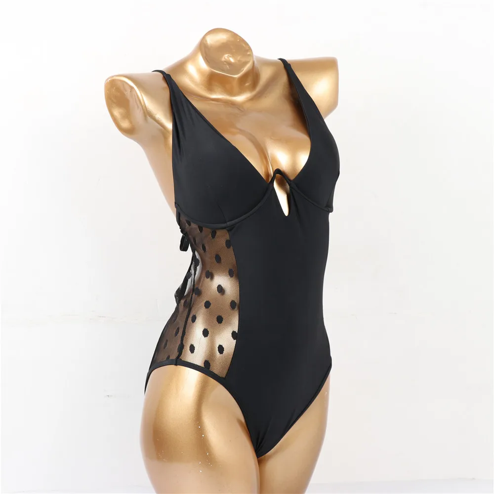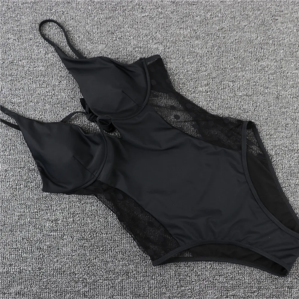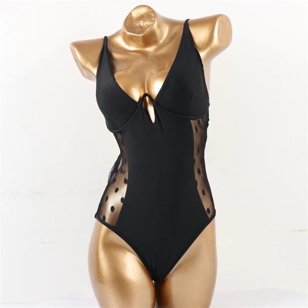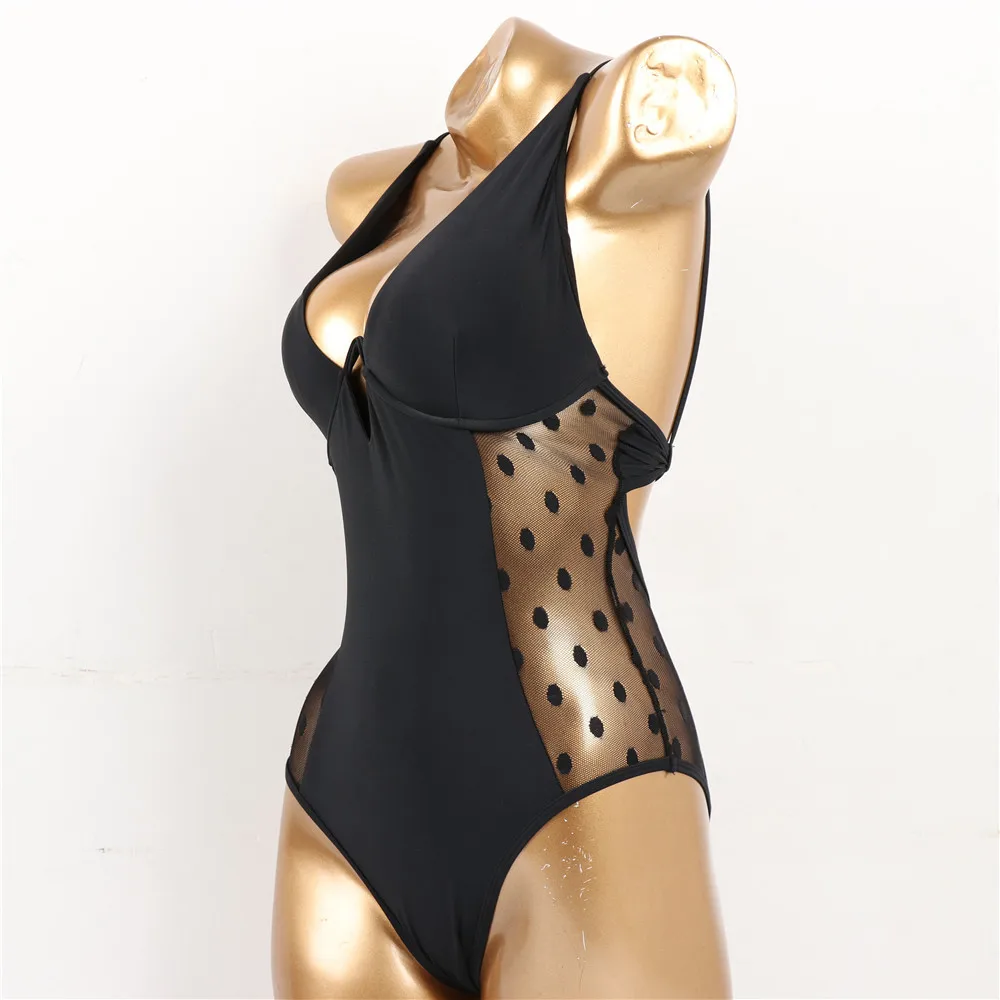 Сексуальный черный сетчатый цельный купальник в горошек, пуш-ап, на косточках, для девушек, 2021, монокини, купальник для женщин, купальник, трикини