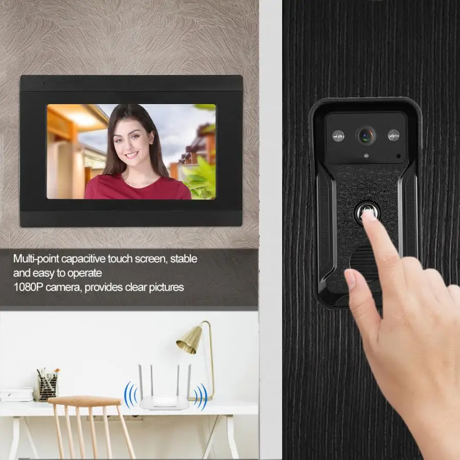 1. Система видеодомофона 7 дюймов, с 2 HD 1080P камерой ночного видения, поддержка удаленного приложения внутренней связи, разблокировка, запись видео и фотографирование.