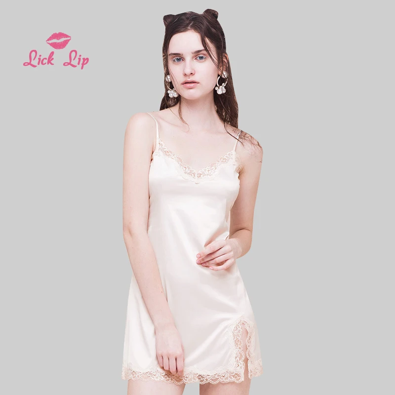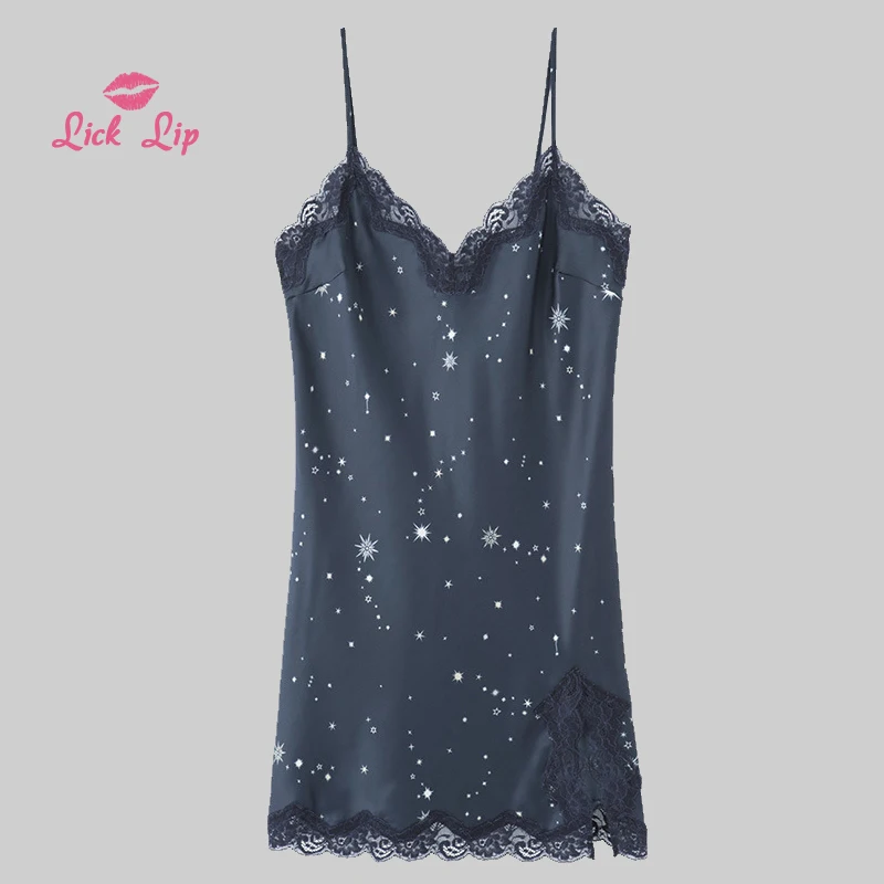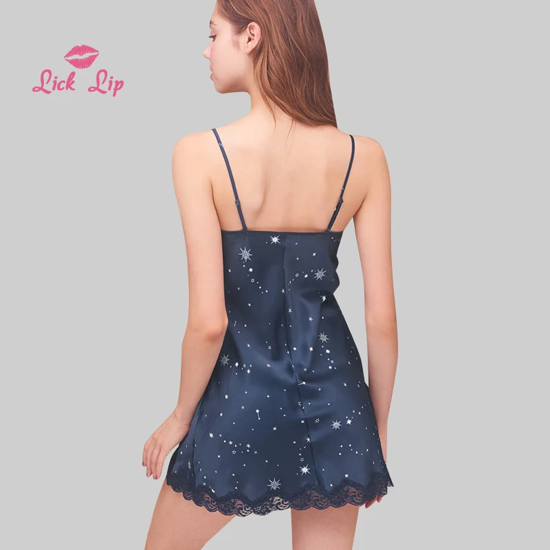 Женская атласная ночная рубашка с V-образным вырезом и разрезом сбоку Lick Lip Soild, пижама с принтом звезд, сексуальный тонкий дышащий домашний костюм SWD17102-3 2019.10.13