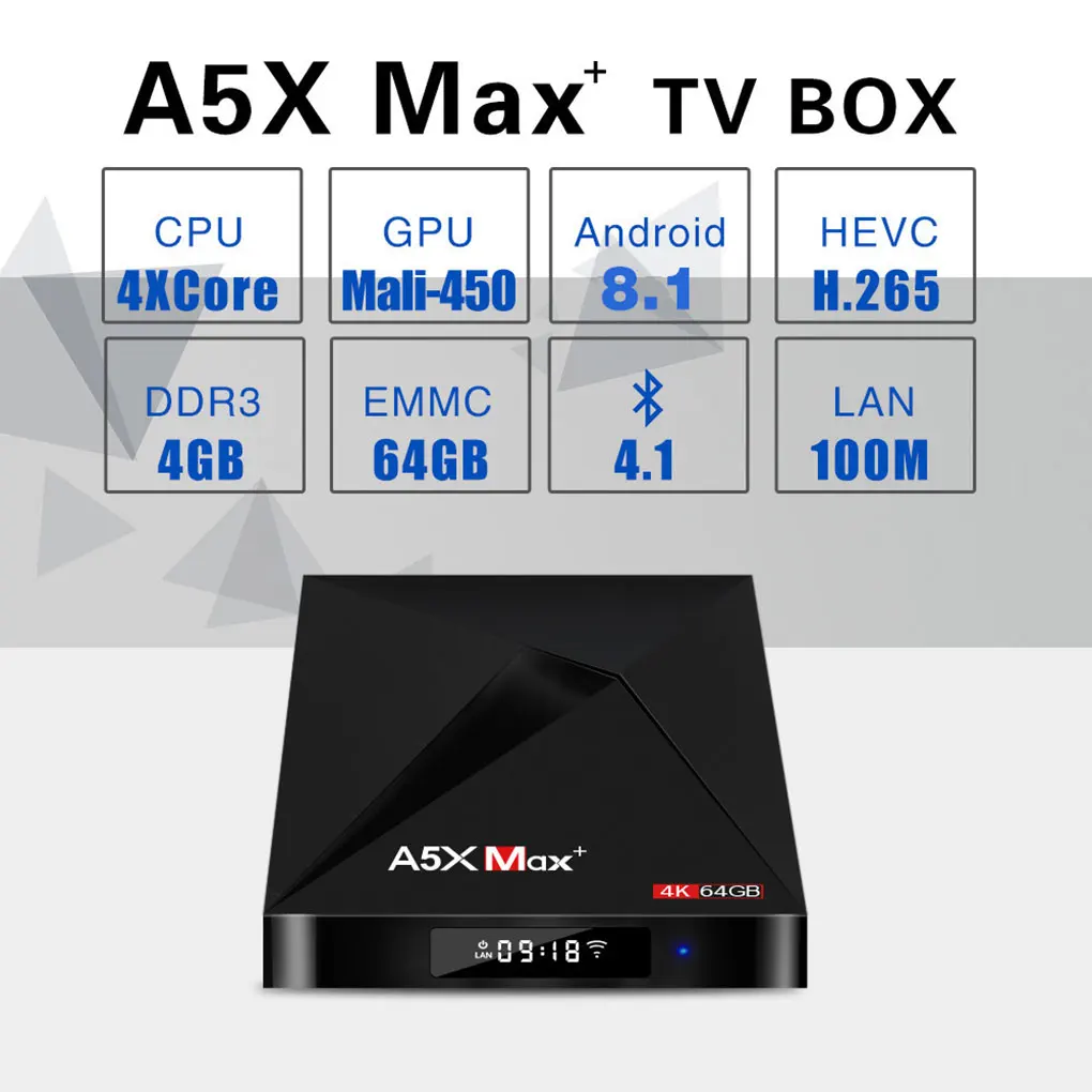 A5X Max Plus 4 + 64 GB Android 7,1 tv Box 2,4G/5G RK3328 телеприставка 4 K медиаплеер