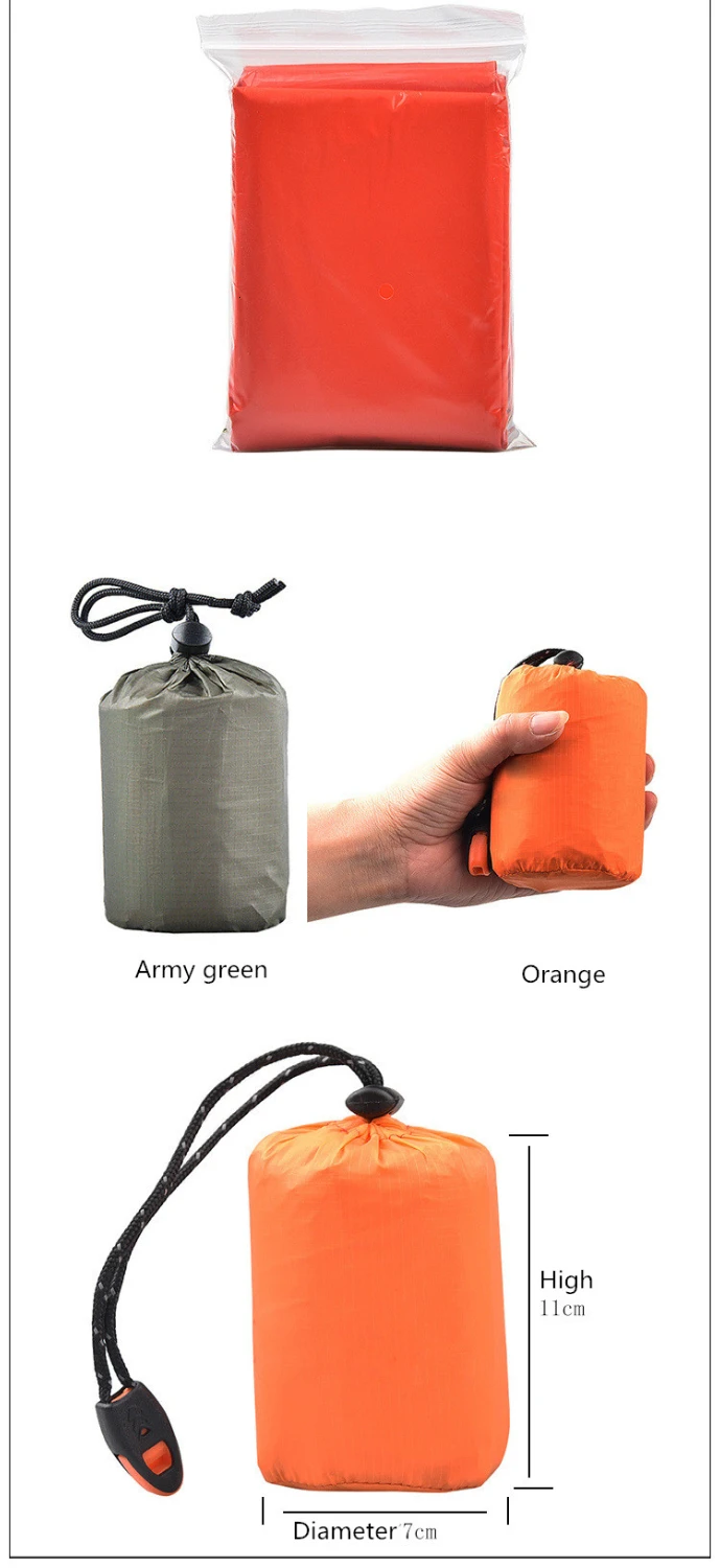 Спальный мешок и дождевик PE алюминиевая пленка аварийно-спасательный сохраняющий тепло на открытом воздухе аптечка унисекс комплект из двух предметов с сумкой для хранения