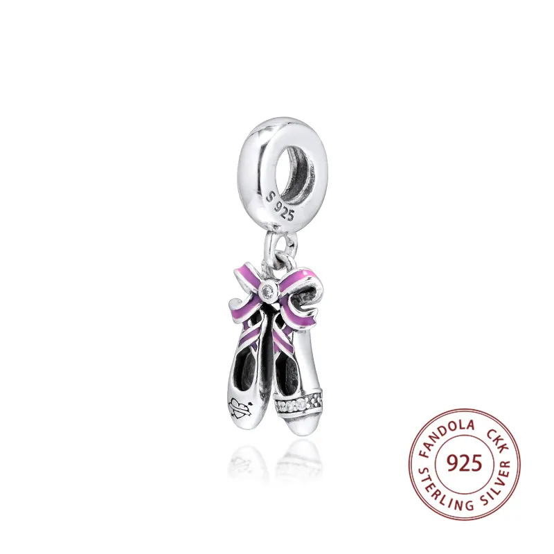 Информация о продукте: Тип: Шарм, бисер, ювелирные изделия своими руками Металл: 925 пробы серебро Материал: Розовая эмаль Камень: прозрачный CZ Наименование: балетки в стиле панк; Очаровательные туфли с бусинами Посылка: 1 бисер (цепочка в комплект не входит)