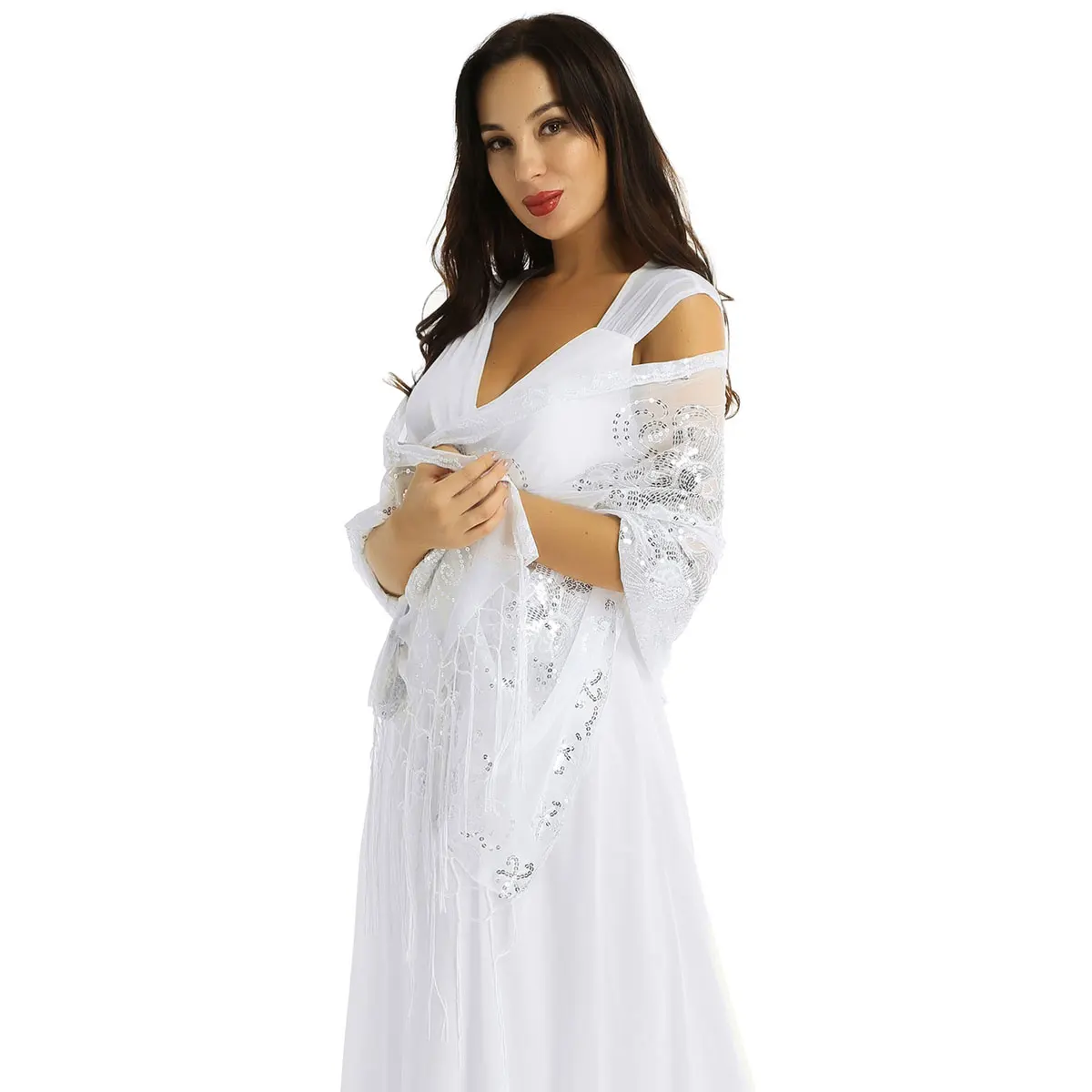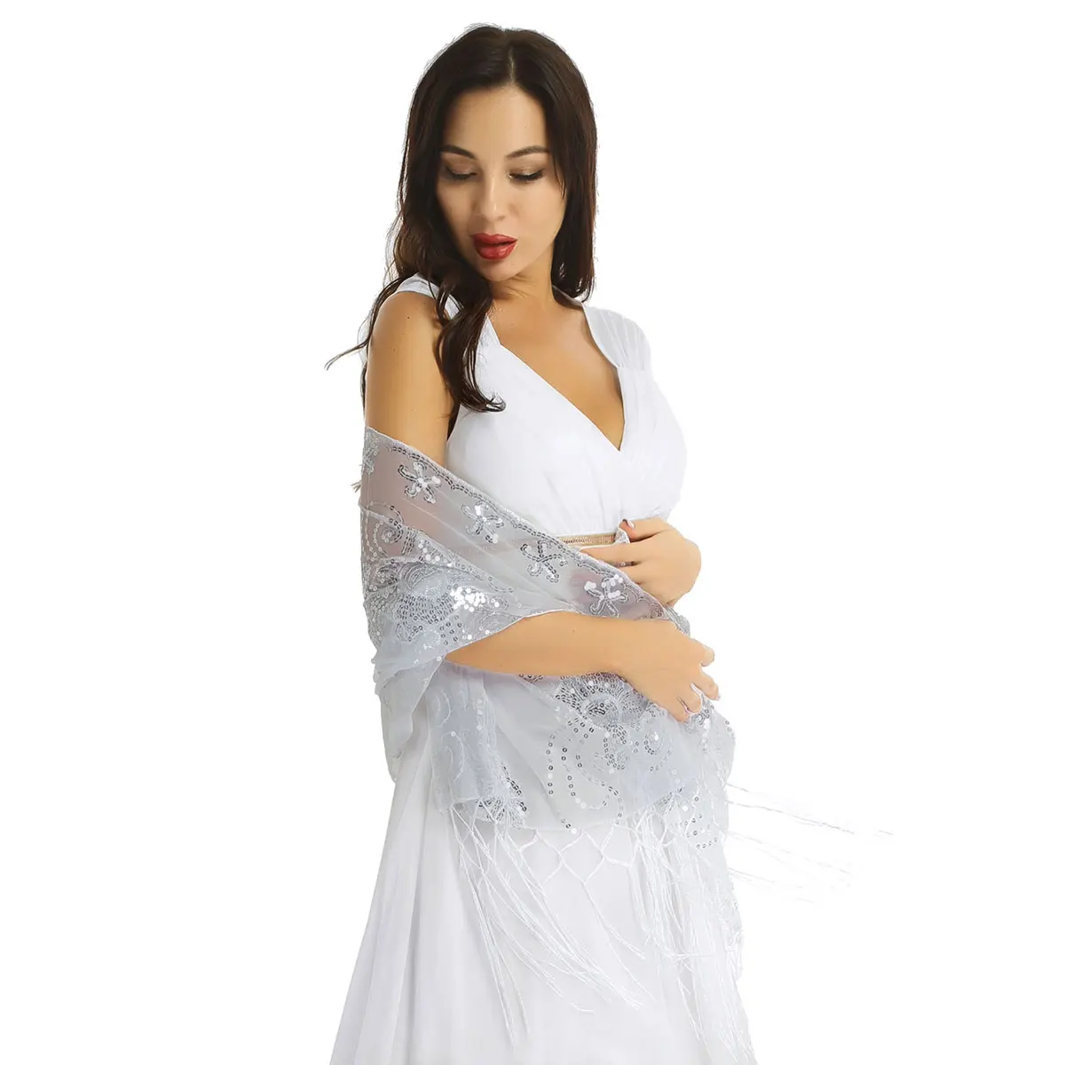 Женская винтажная накидка с блестками в стиле ретро 1920s, вечерняя накидка с бахромой, подходит для большинства женщин.