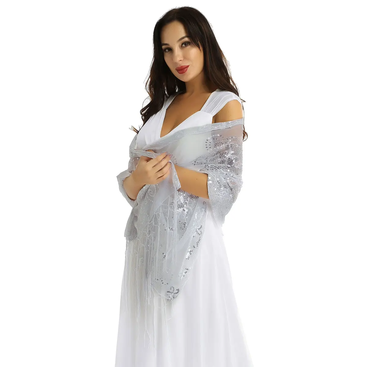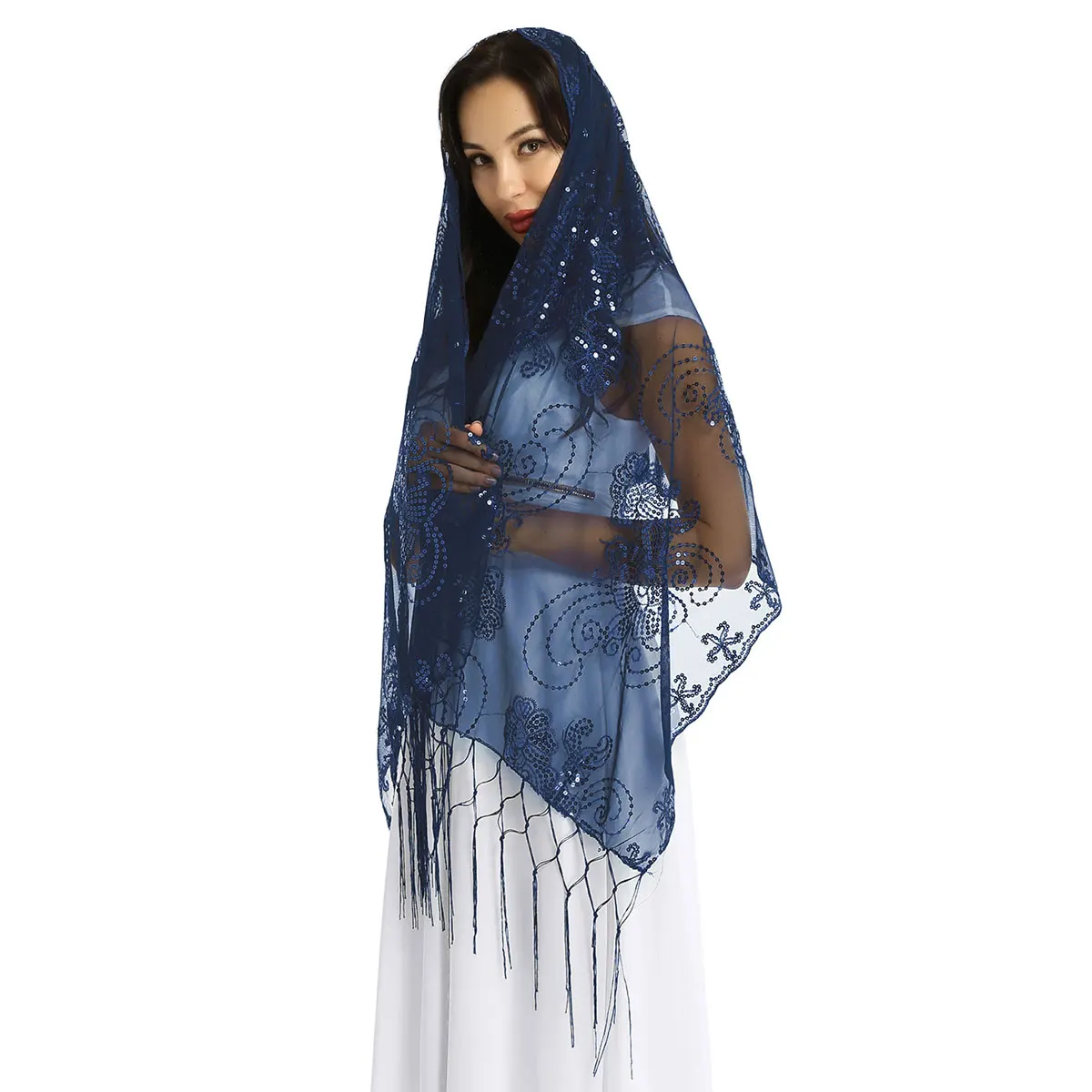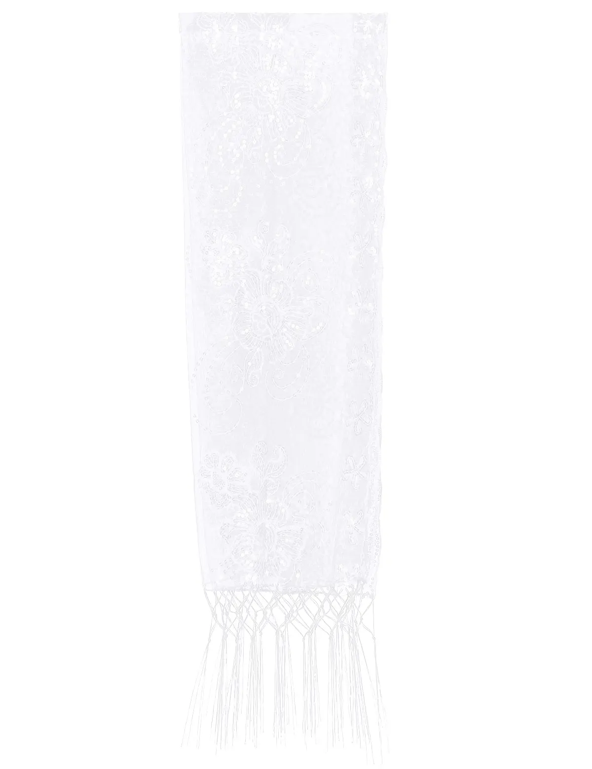 Просвечивайте прозрачную сетку с бахромой по подолу, отделкой пайетками и краями гребешка в различных классических цветах.