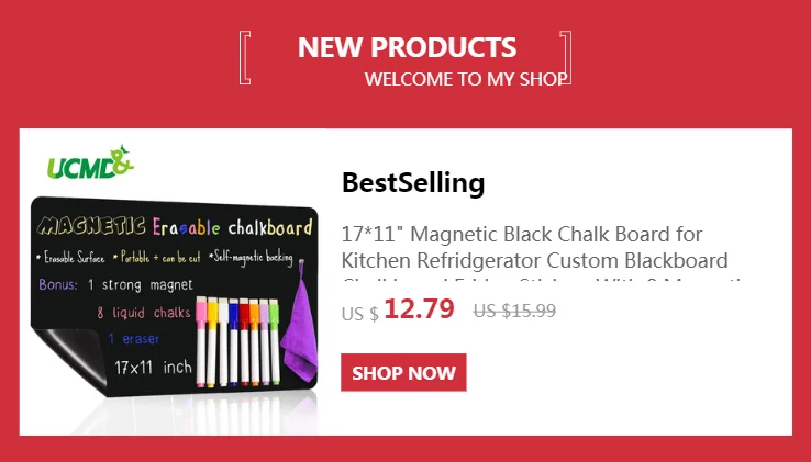Название бренда: UCMD Классификация: для плитки, мебельных наклеек, для холодильника, наклейки на окна, для стены Описание: доска для рисования с клеем Материал: железный порошок, резина, ПЭТ пленка Особенности: удерживающие магниты, гибкие, сухие стирания, портативные, прочные, компактные Размер: размер может быть настроен (макс. длина 20 м x ширина 1 м) Толщина: 0,6 мм Сухое стирание: можно очистить после 30 дней. Бесплатные аксессуары: ручка, ластик, магниты Упаковка: утолщенная бумажная трубка для защиты в хорошем состоянии