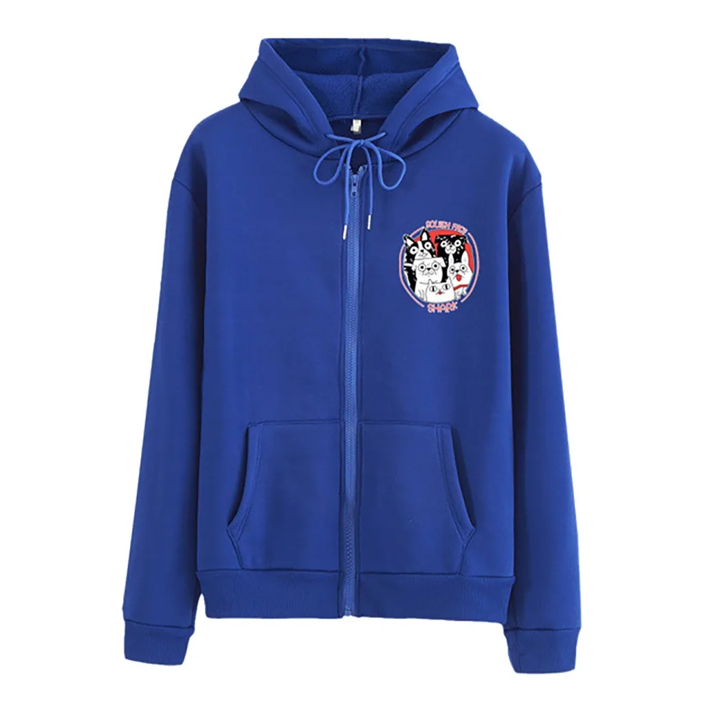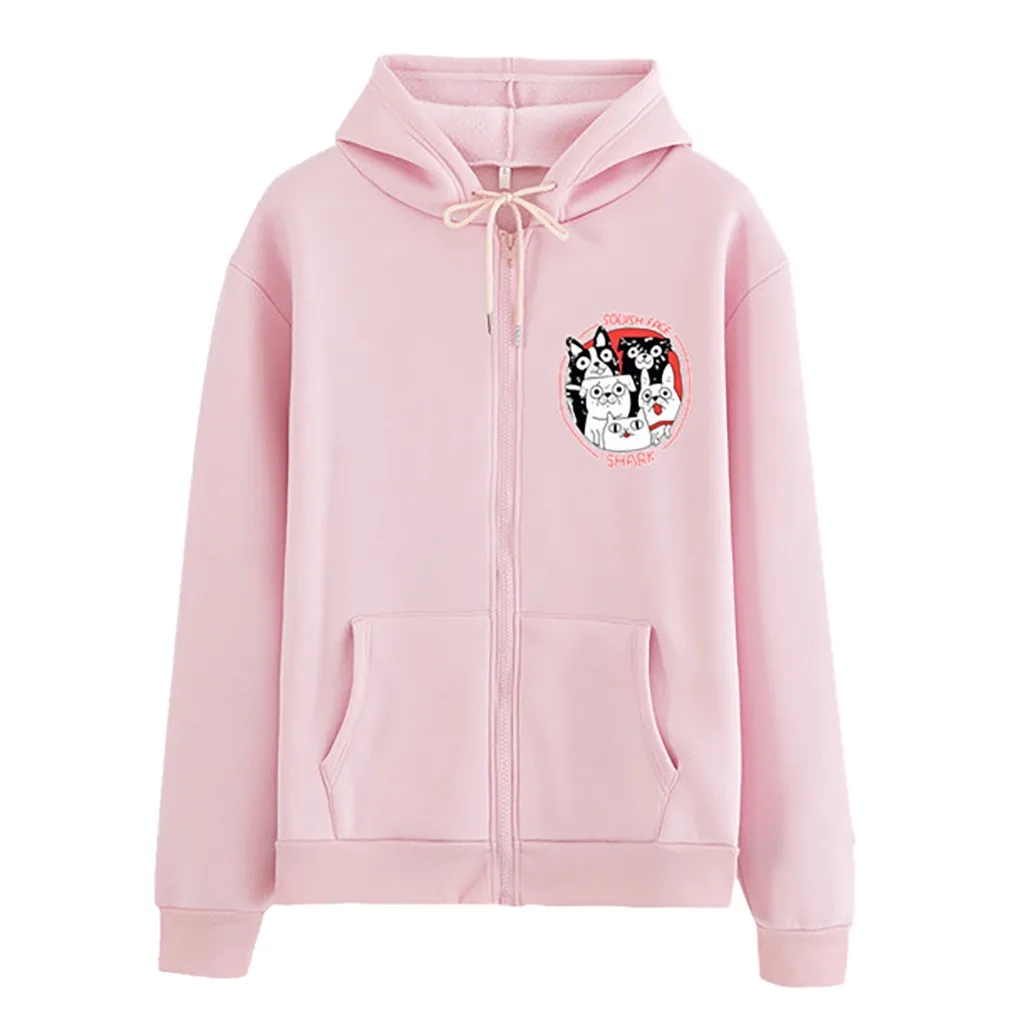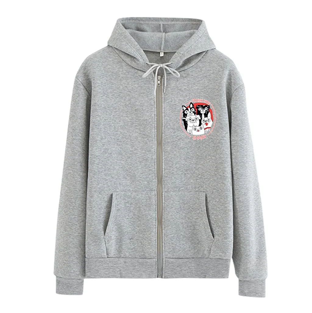 Женская мода случайные свободные o-neckrabbit печати молнии Hoodie печатных пальто-пулловер