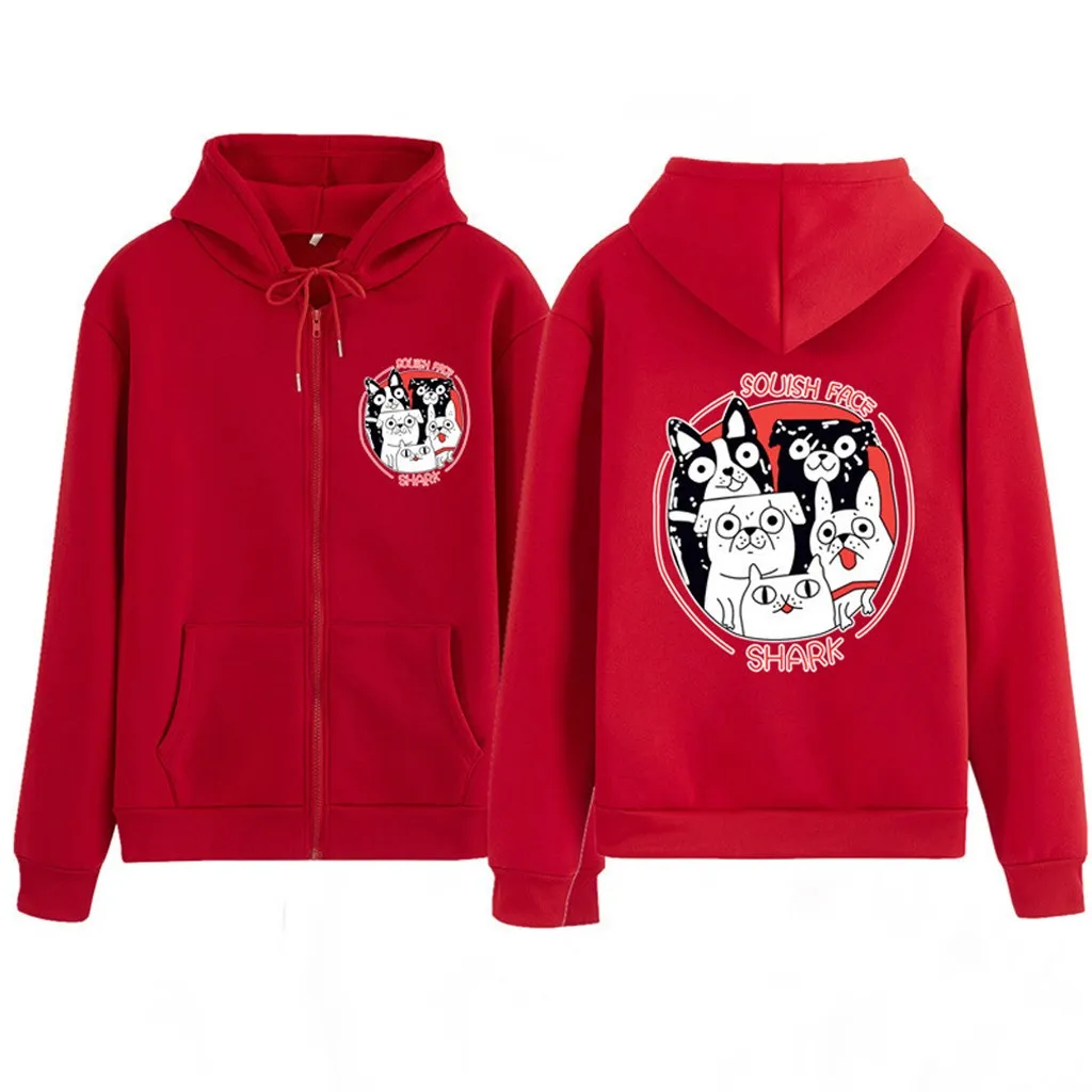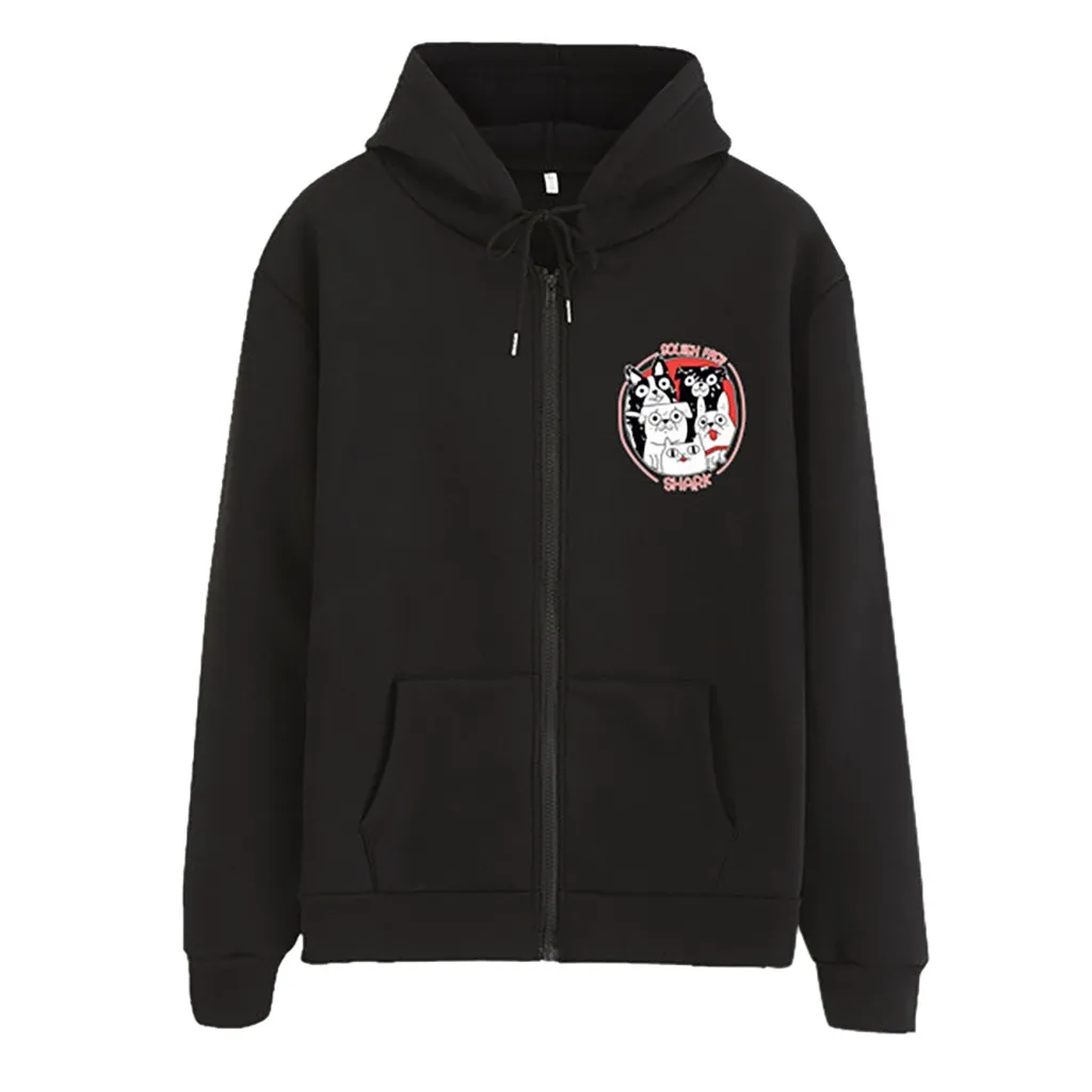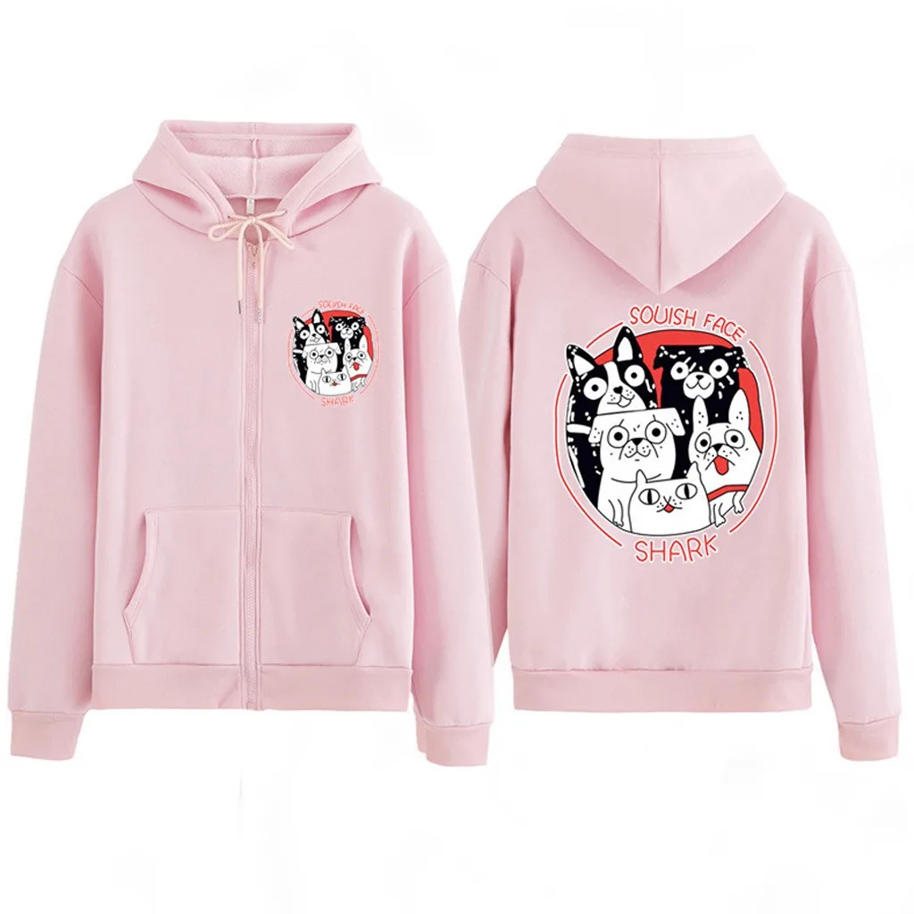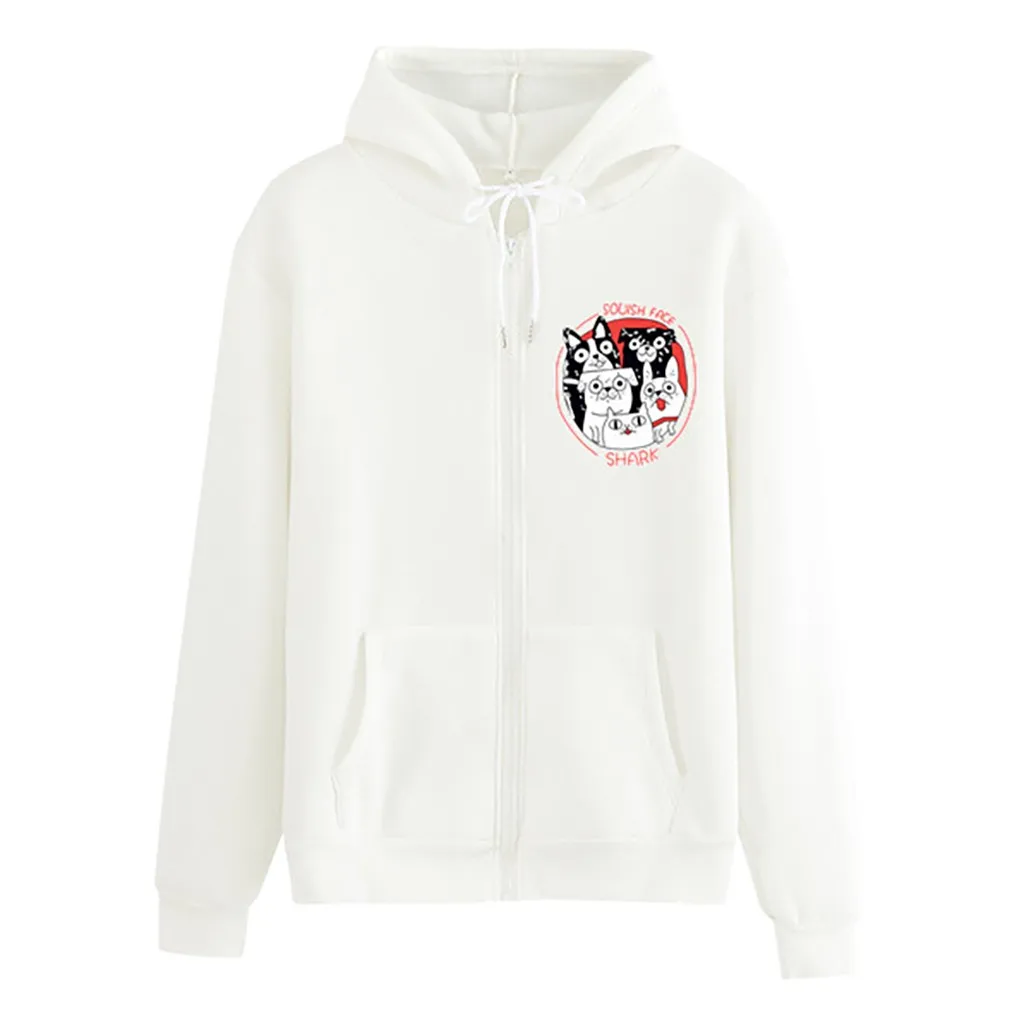Женская мода случайные свободные o-neckrabbit печати молнии Hoodie печатных пальто-пулловер