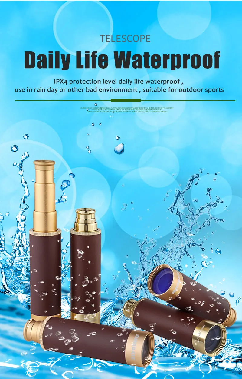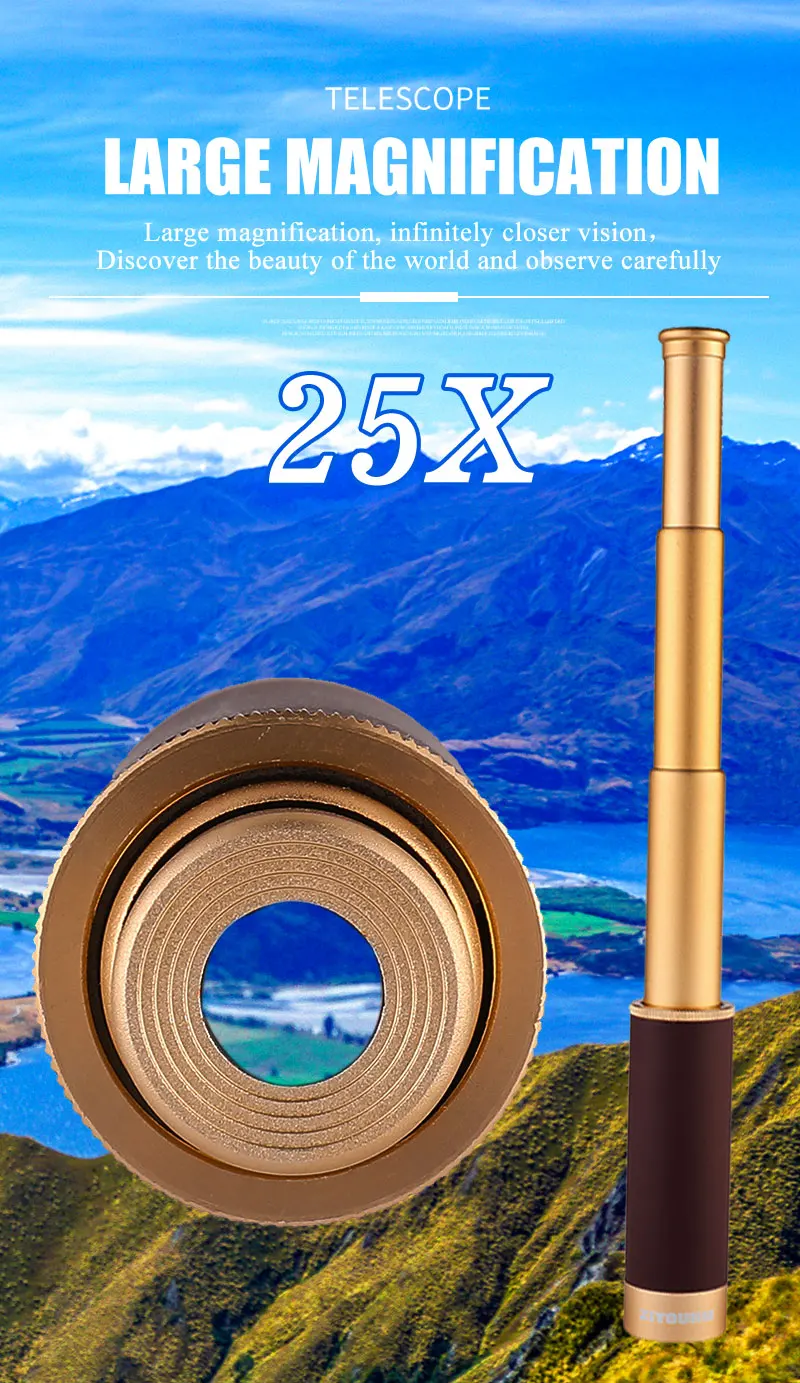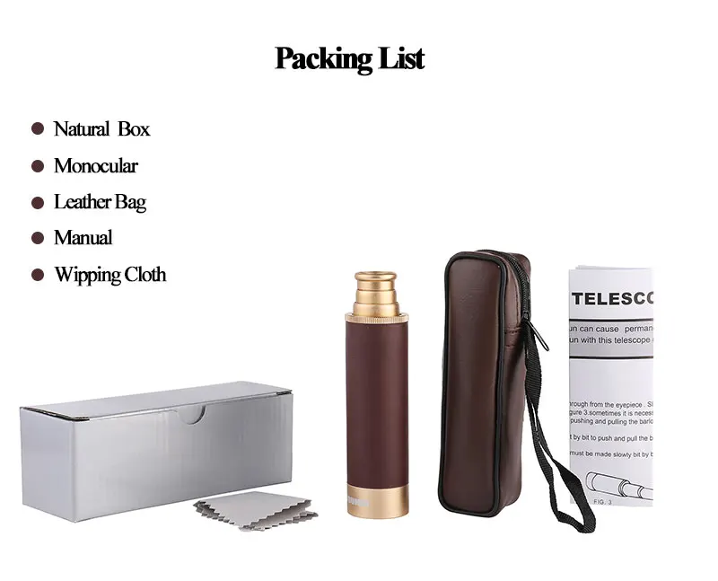 ★Высокое качество: основные компоненты изготовлены из высококачественного алюминиевого сплава с золотым покрытием, а ручная часть покрыта высококачественной кожей. ★Классический внешний вид: Этот монокуляр имеет прочную металлическую конструкцию и блестящую латунную отделку. ★Более четкие, яркие, блестящие виды: 25 увеличений x 30 мм диаметр объекта, линзы выполнены с синим покрытием, что поможет вам получить ощущение высокой четкости. ★Водонепроницаемый, портативный: разборный окуляр для компактного хранения. Так круто для улицы! И идеально подходит для морской или пиратской коллекции! ★Подходит для: путешествий, отпуска, прогулок, пеших прогулок, занятий спортом Наслаждайтесь красивой природой, видом на птиц, рыбалки. ★Окуляр и пылезащитная крышка объектива: защищают объектив от пыли и позволяют видеть все четко. ★Высокая производительность: водонепроницаемый, влагостойкий и противотуманный, что позволяет использовать продукт в обычном режиме в сырой и дождливый день. Но погружение в воду или подводное плавание не рекомендуется