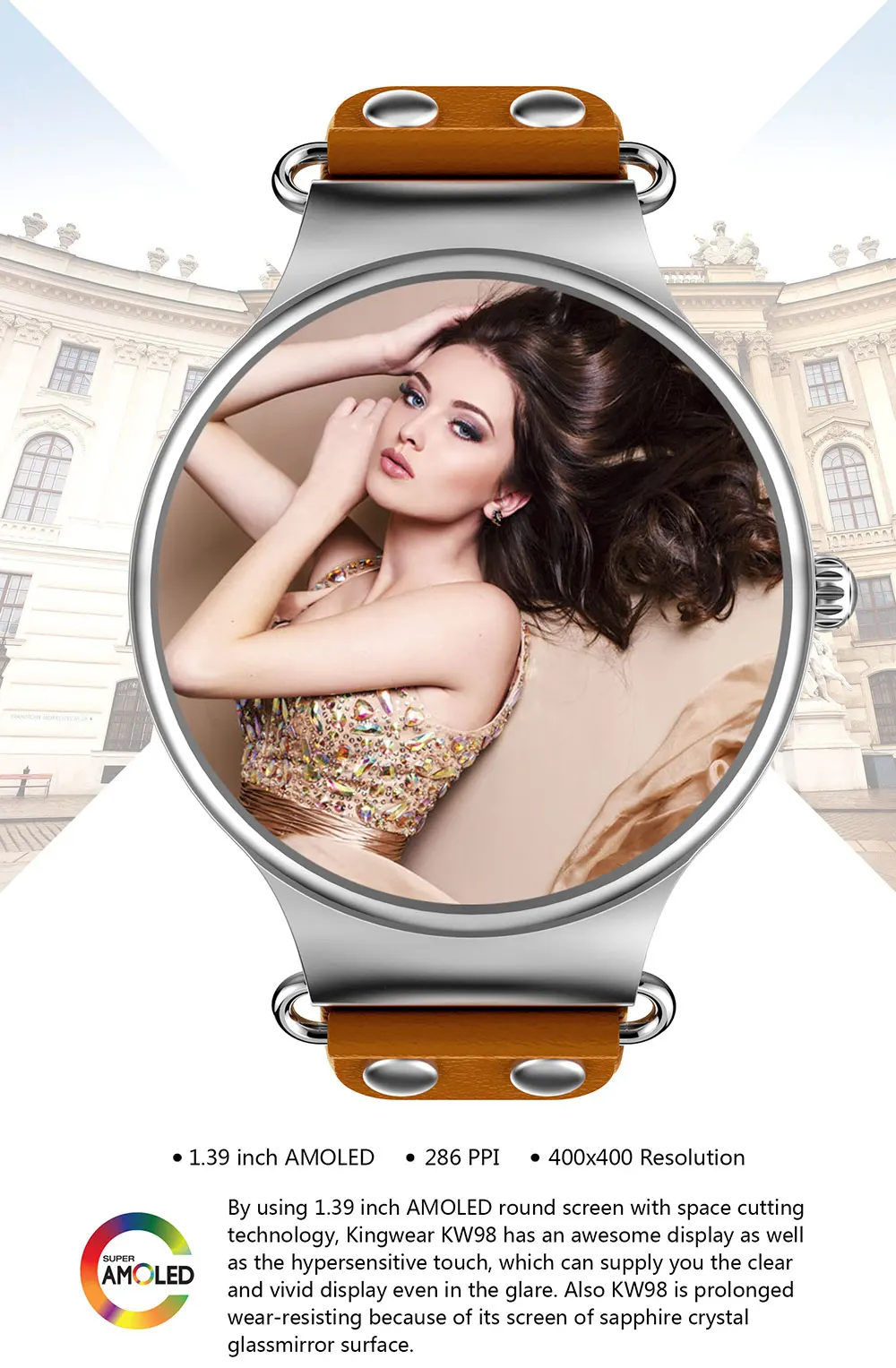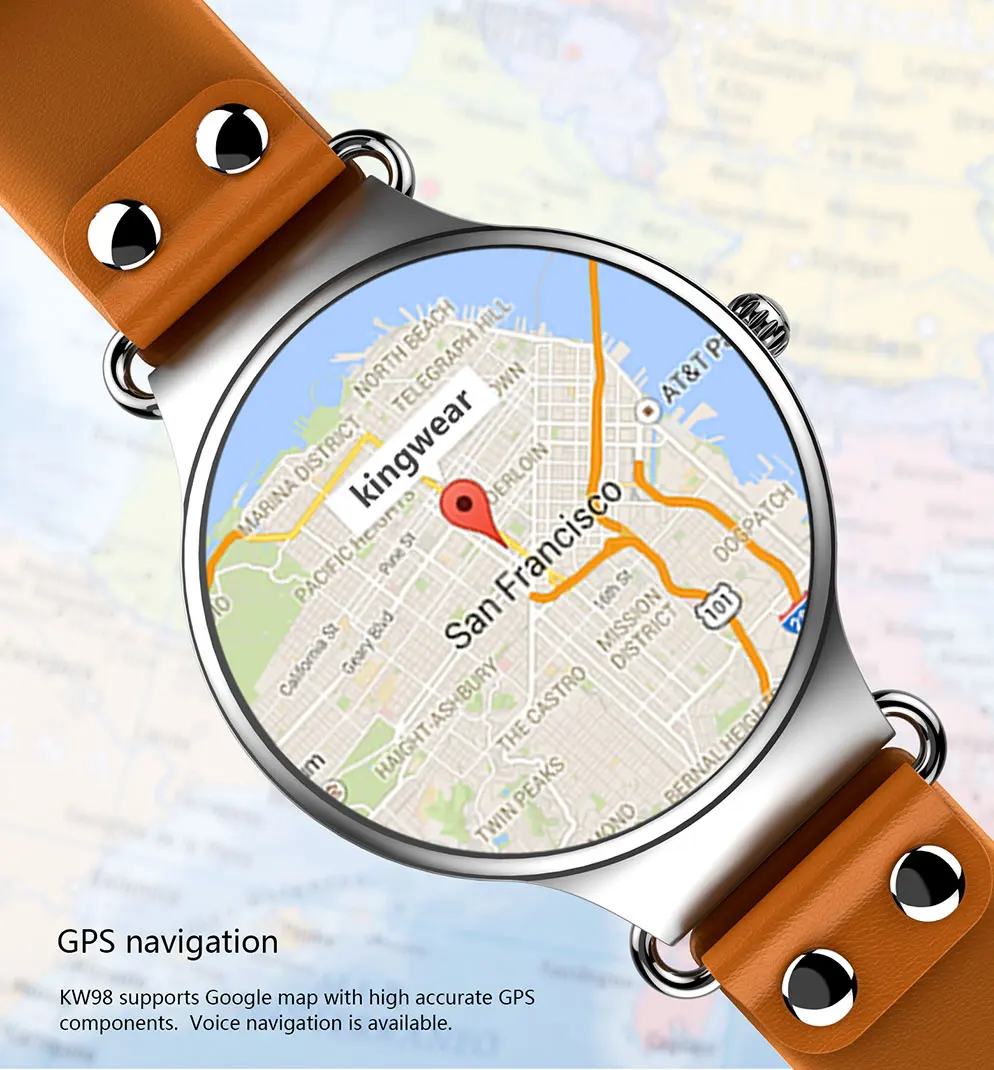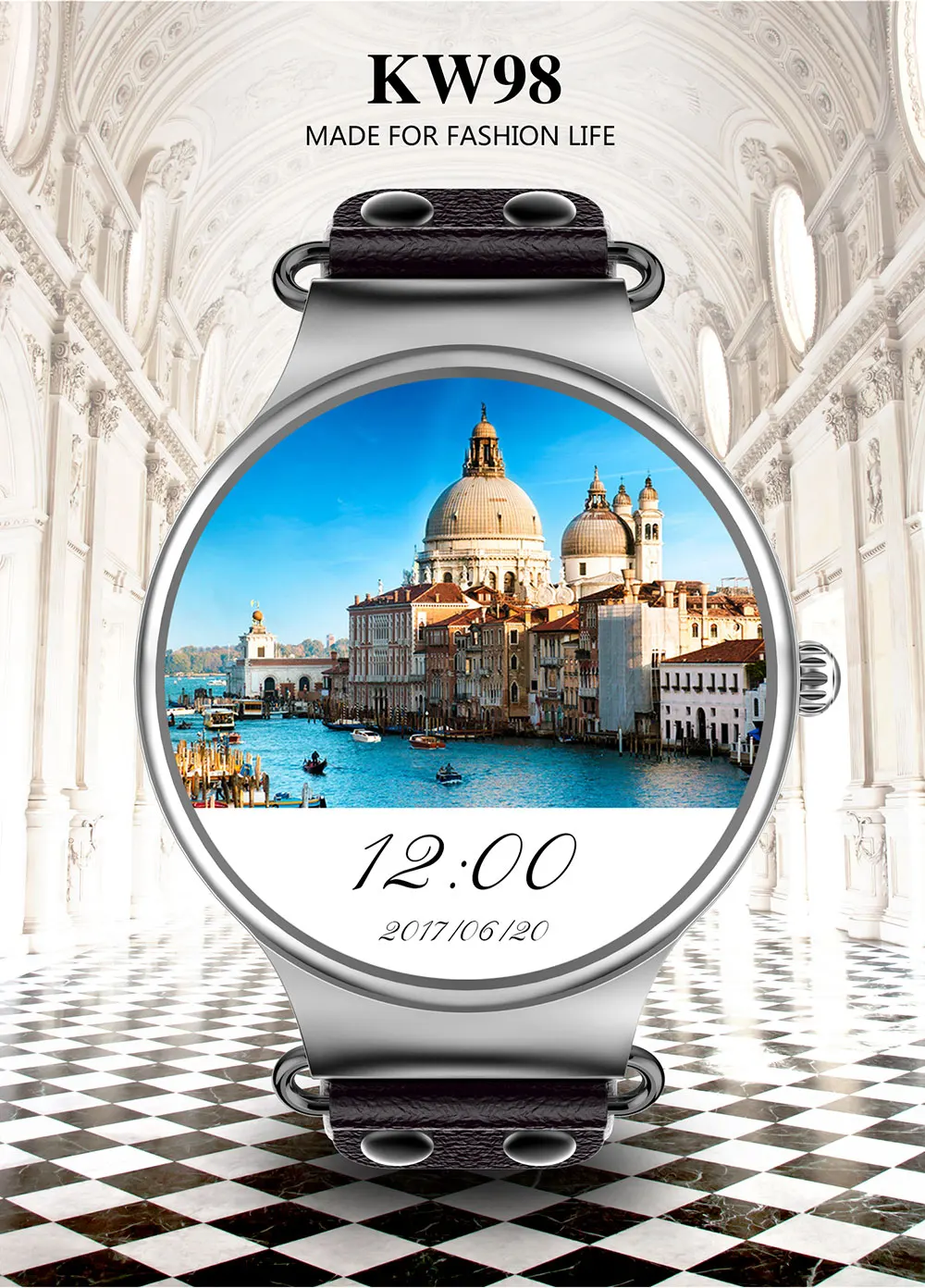 KW98 Смарт-часы Android 5,1 8 ГБ/512 Мб Wifi GPS Bluetooth умные часы монитор сердечного ритма MTK6580 Android часы для мужчин