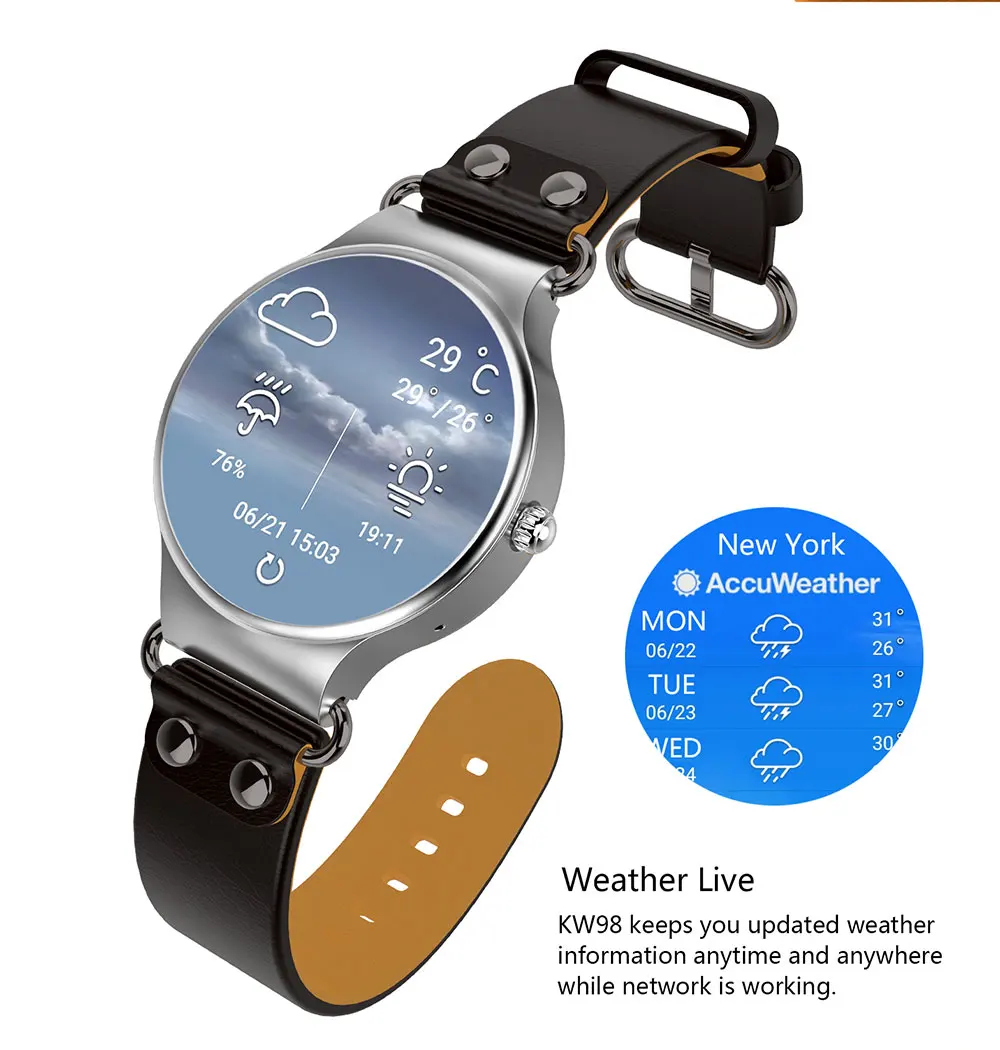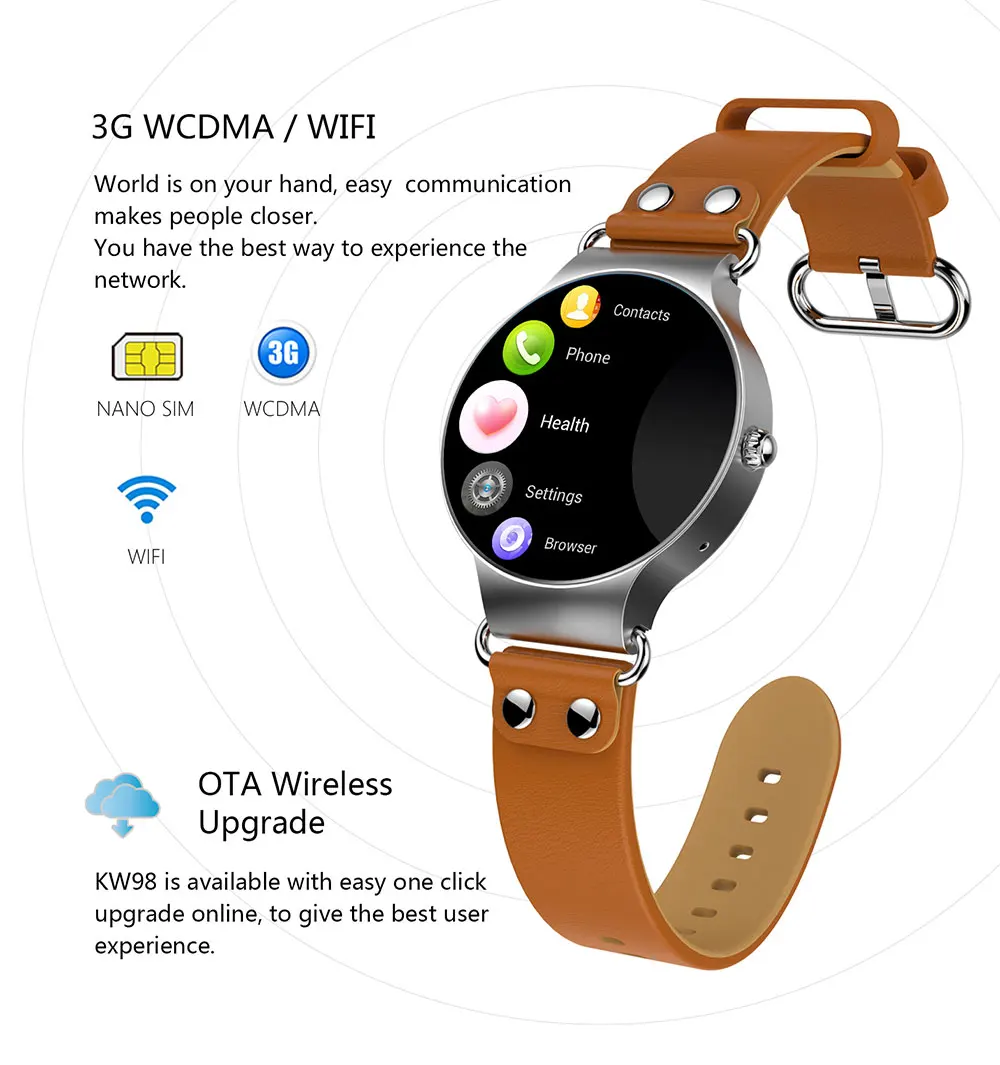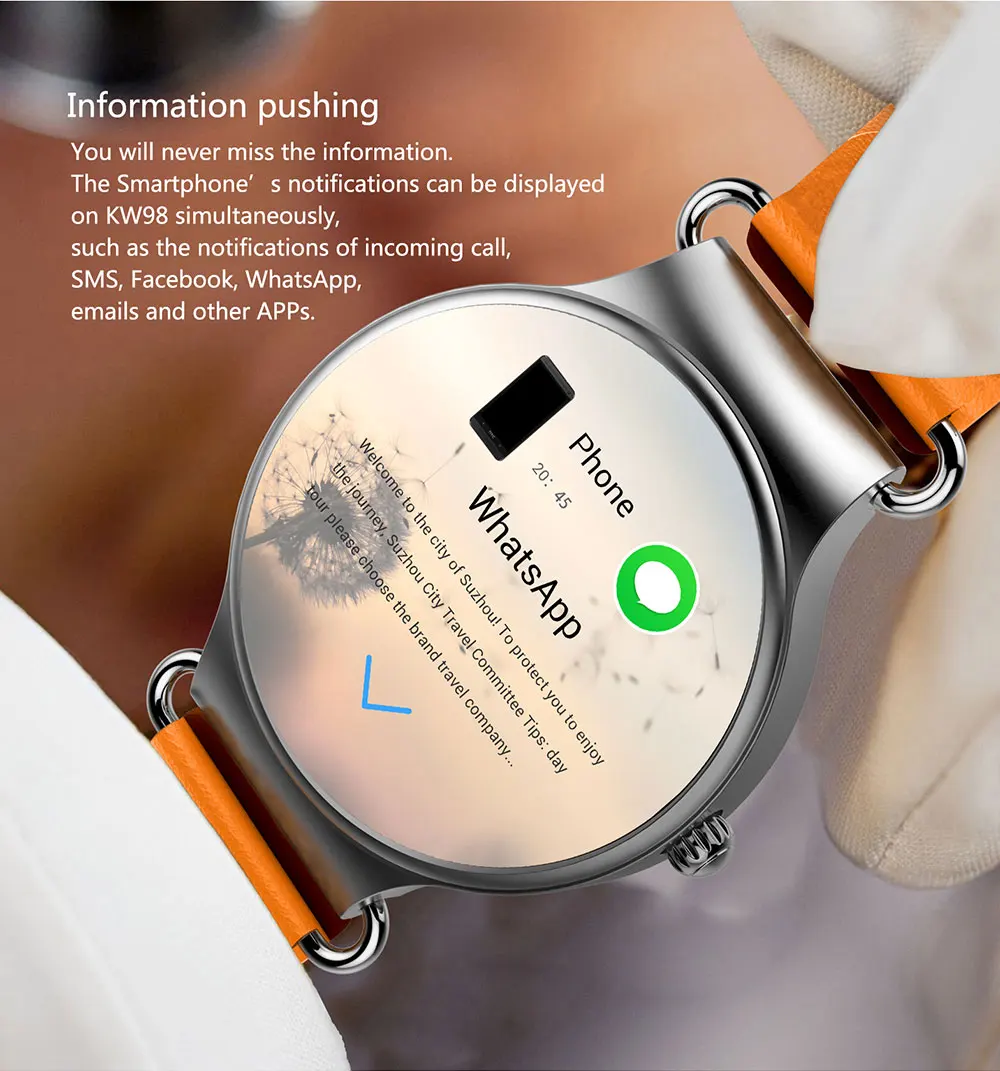 KW98 Смарт-часы Android 5,1 8 ГБ/512 Мб Wifi GPS Bluetooth умные часы монитор сердечного ритма MTK6580 Android часы для мужчин
