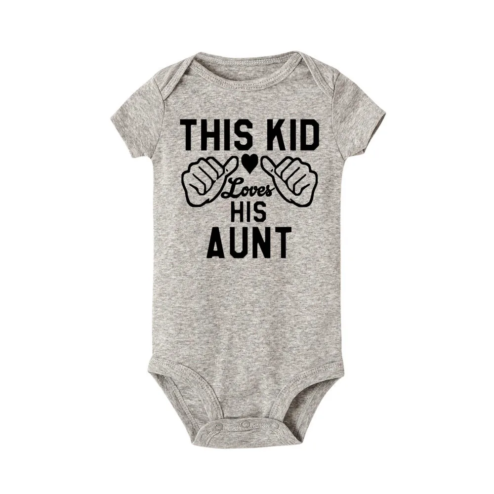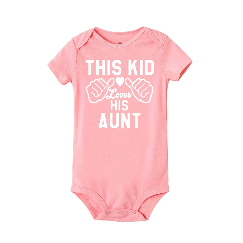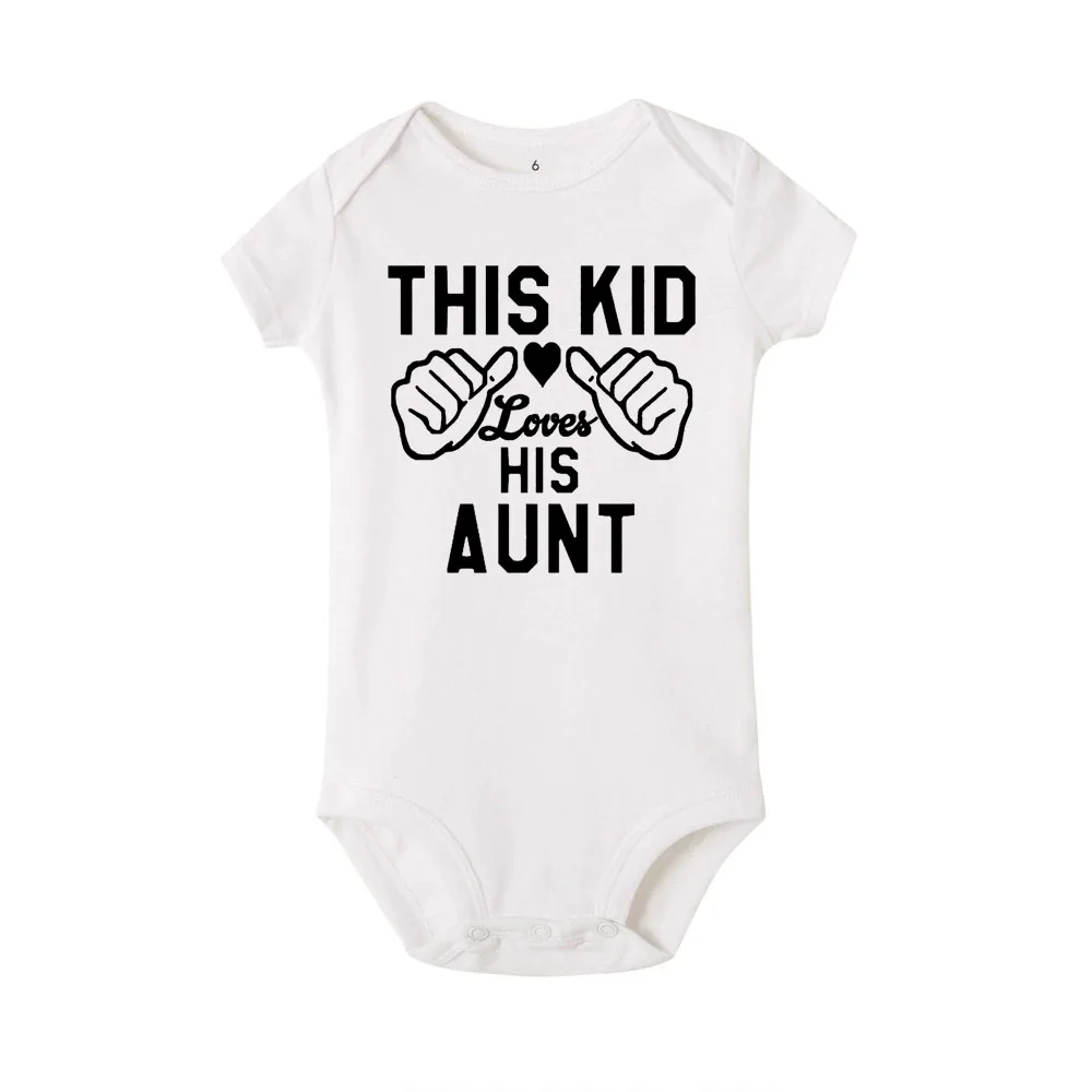 Newborn Baby Boys Romper This Kid Loves His Aunt Print Funny Infant Boy Short-sleeved Jumpsuit Toddler Cute Onesie Outfit