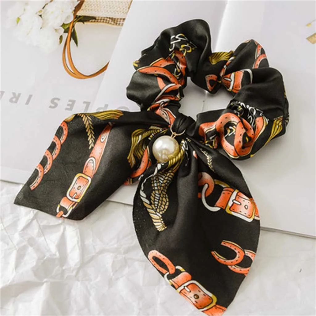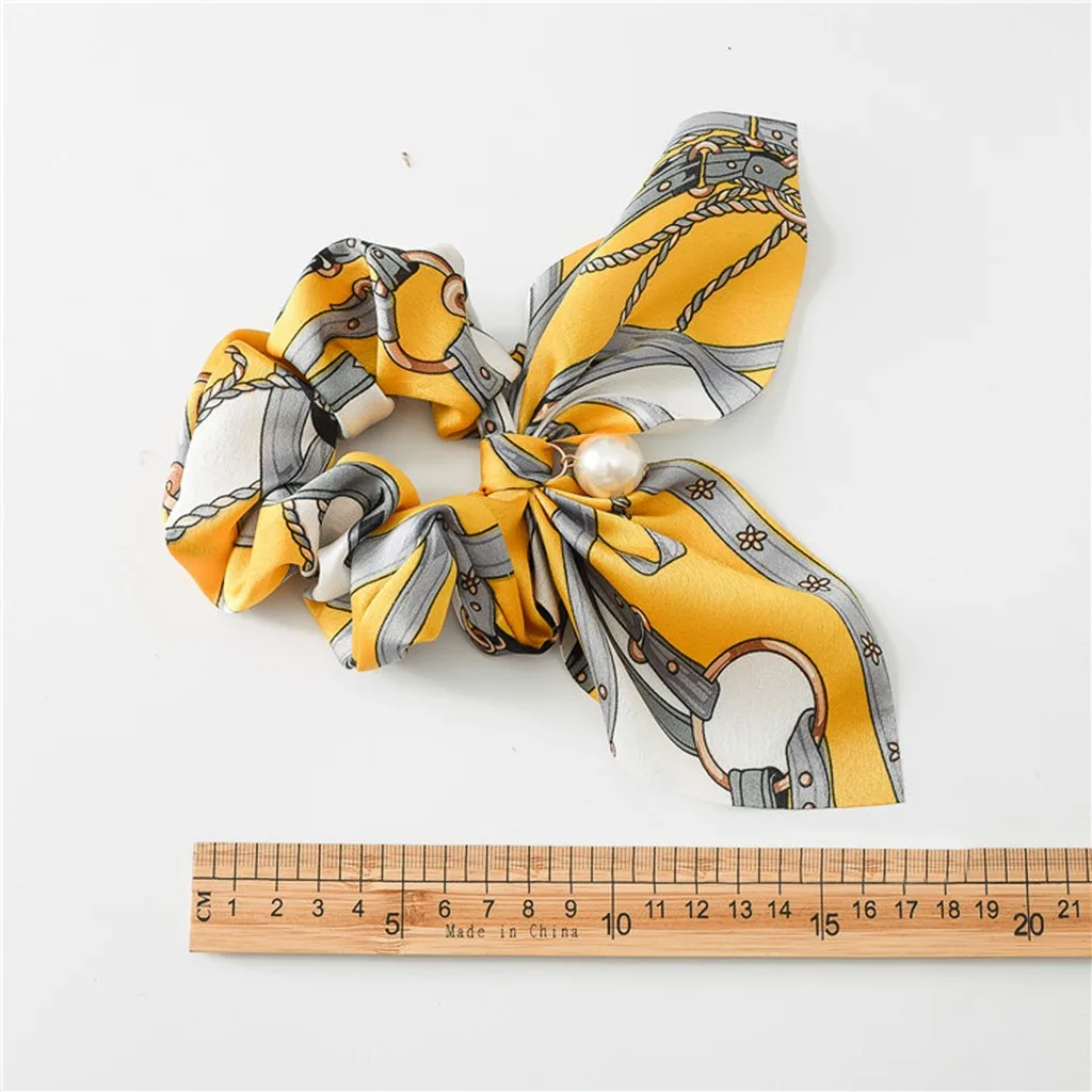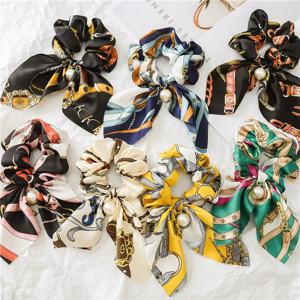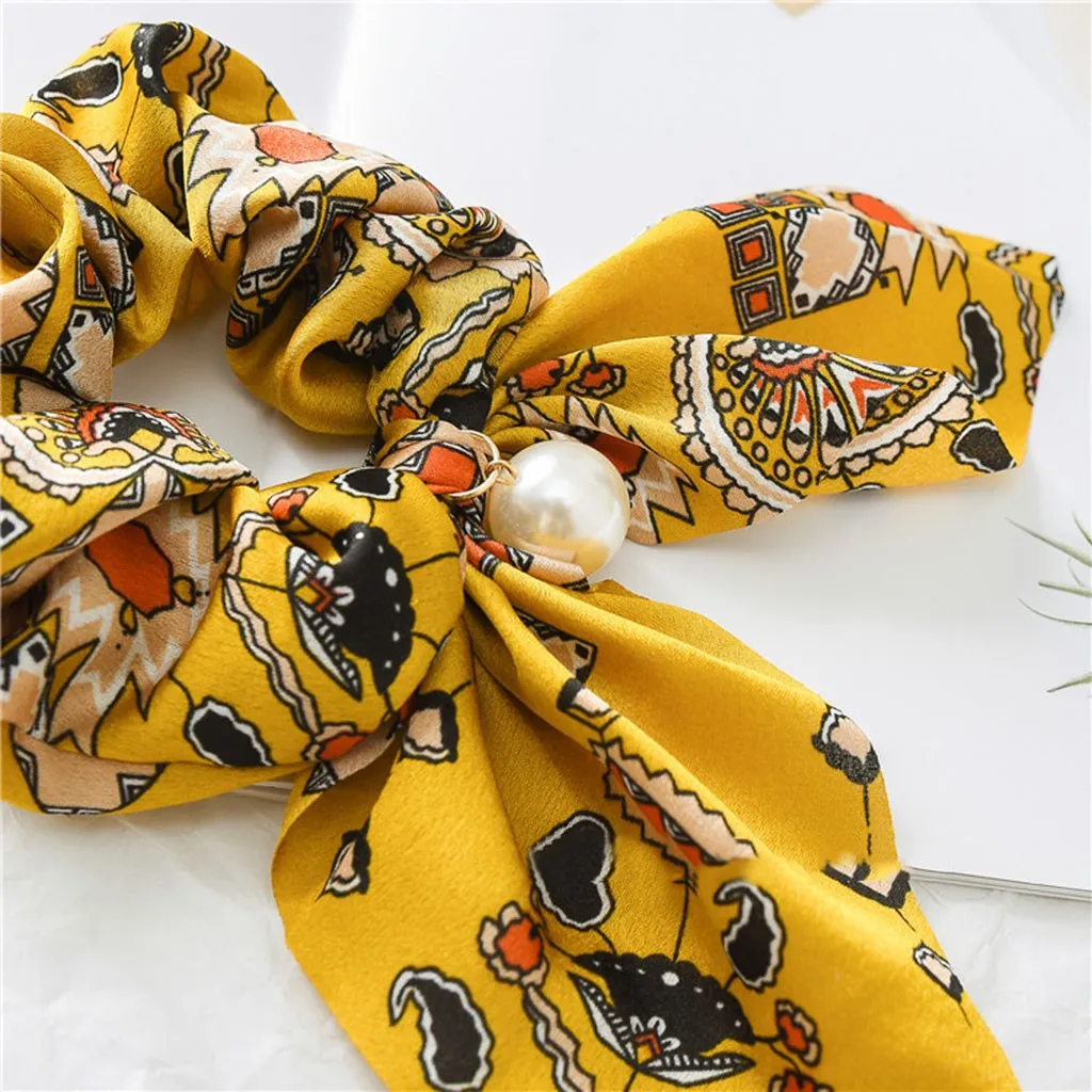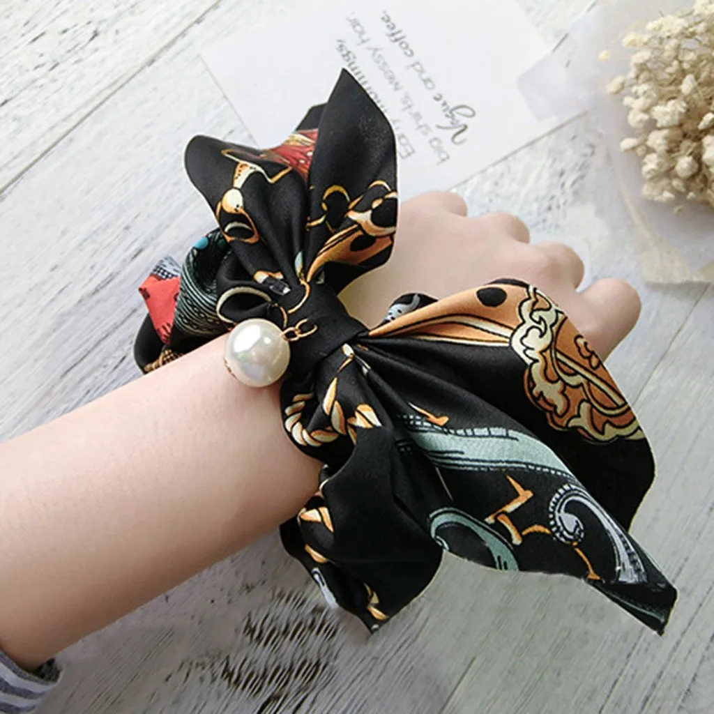 Женский новый жемчуг большой круг волос Веревка шелковый шарф волос кольцо, бант волос Веревка