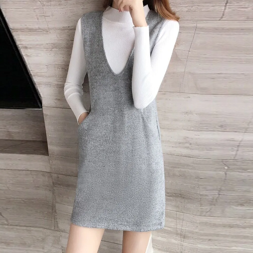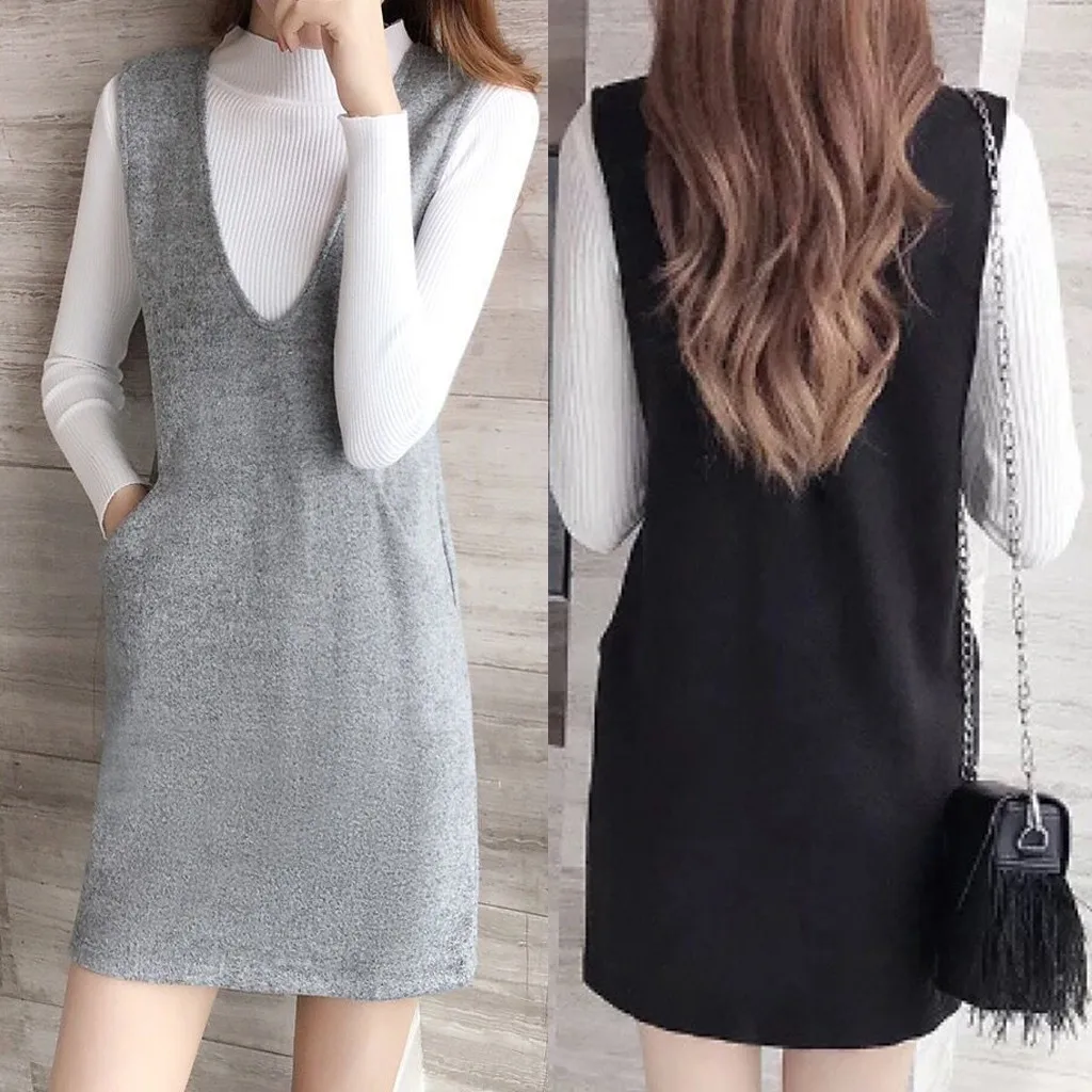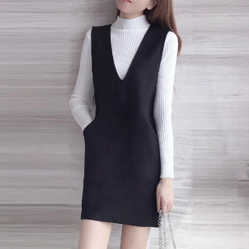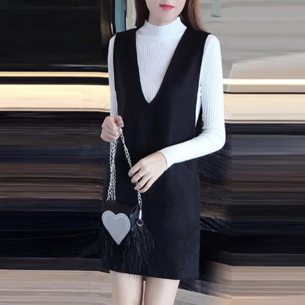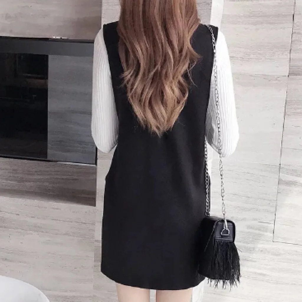Женский Осенний Модный корейский костюм из 2 предметов, платья до колена с длинными рукавами для отдыха