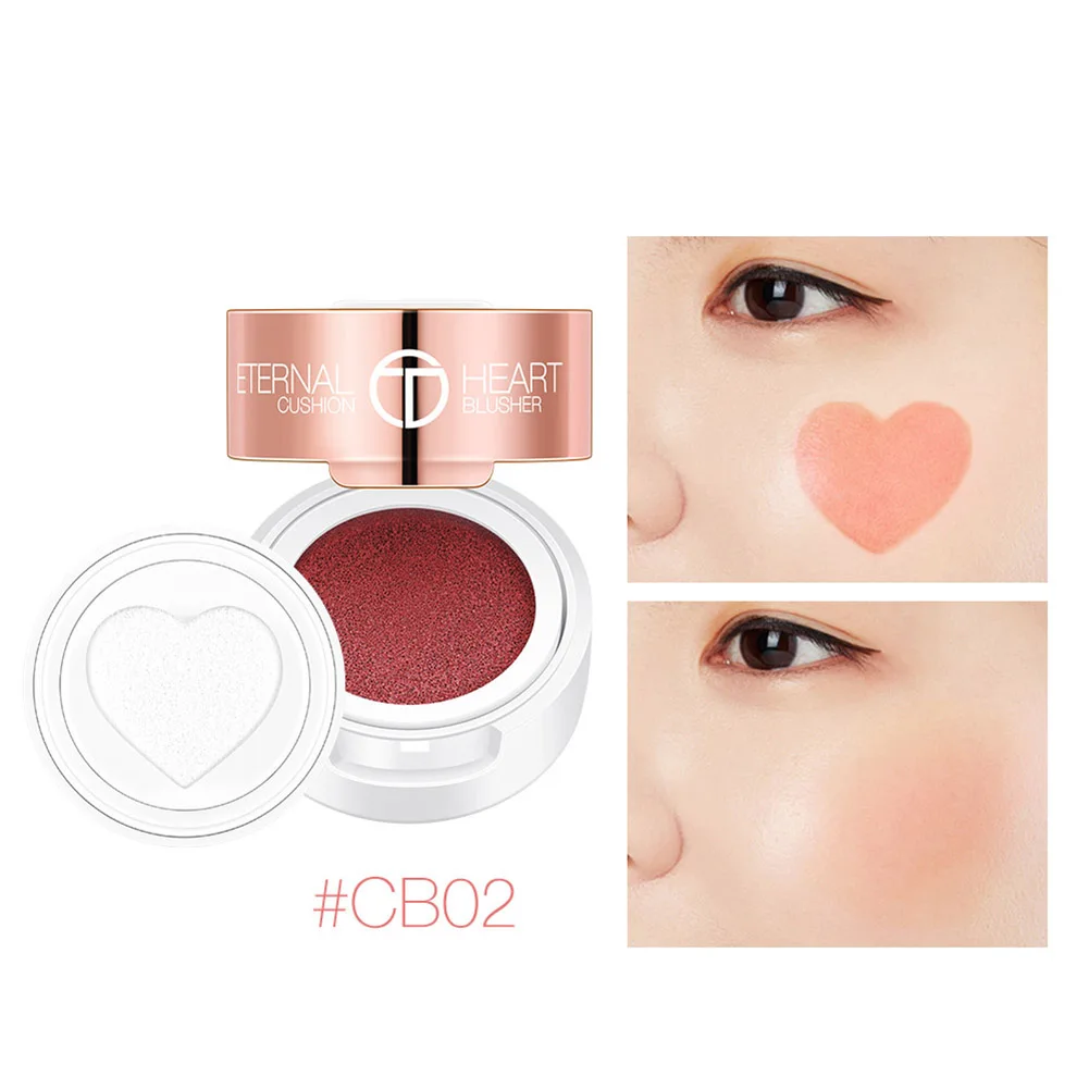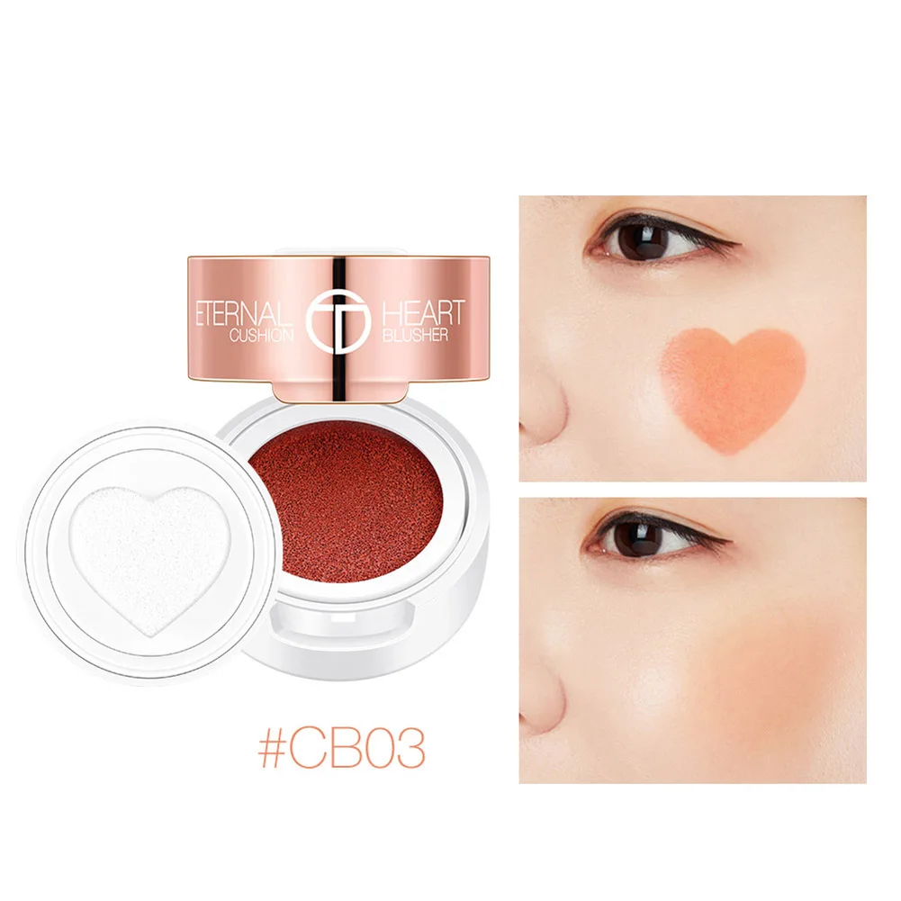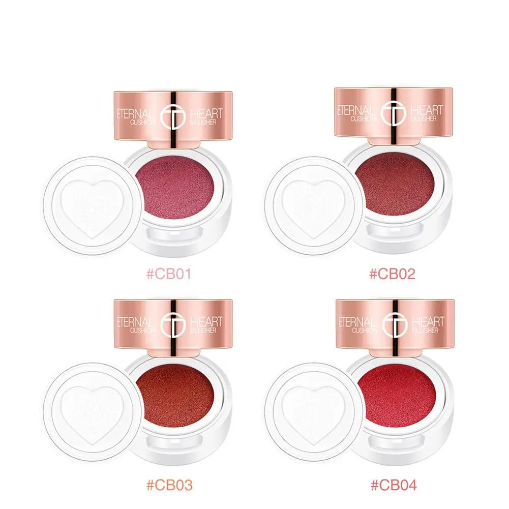 OTWOO 4 Colors Heart Shape Glitter Cushion Blusher Lasting Face Contour Makeup
