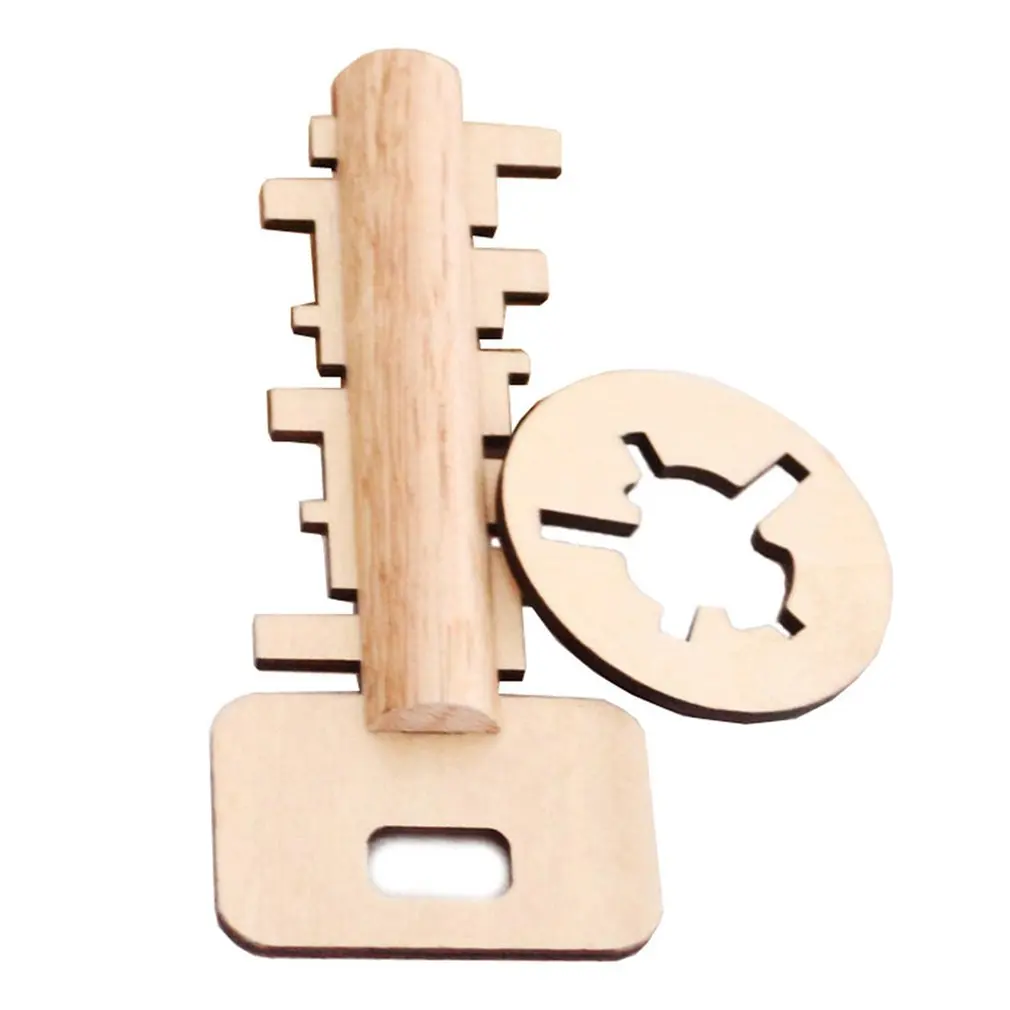 Children Funny Kong Ming Lock Toys Wooden Toy Unlock Puzzle Key Intellectual Educational Stress Release Kids Jigsaw