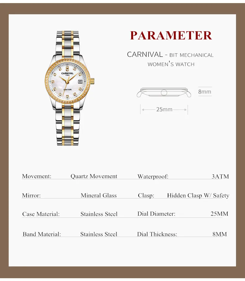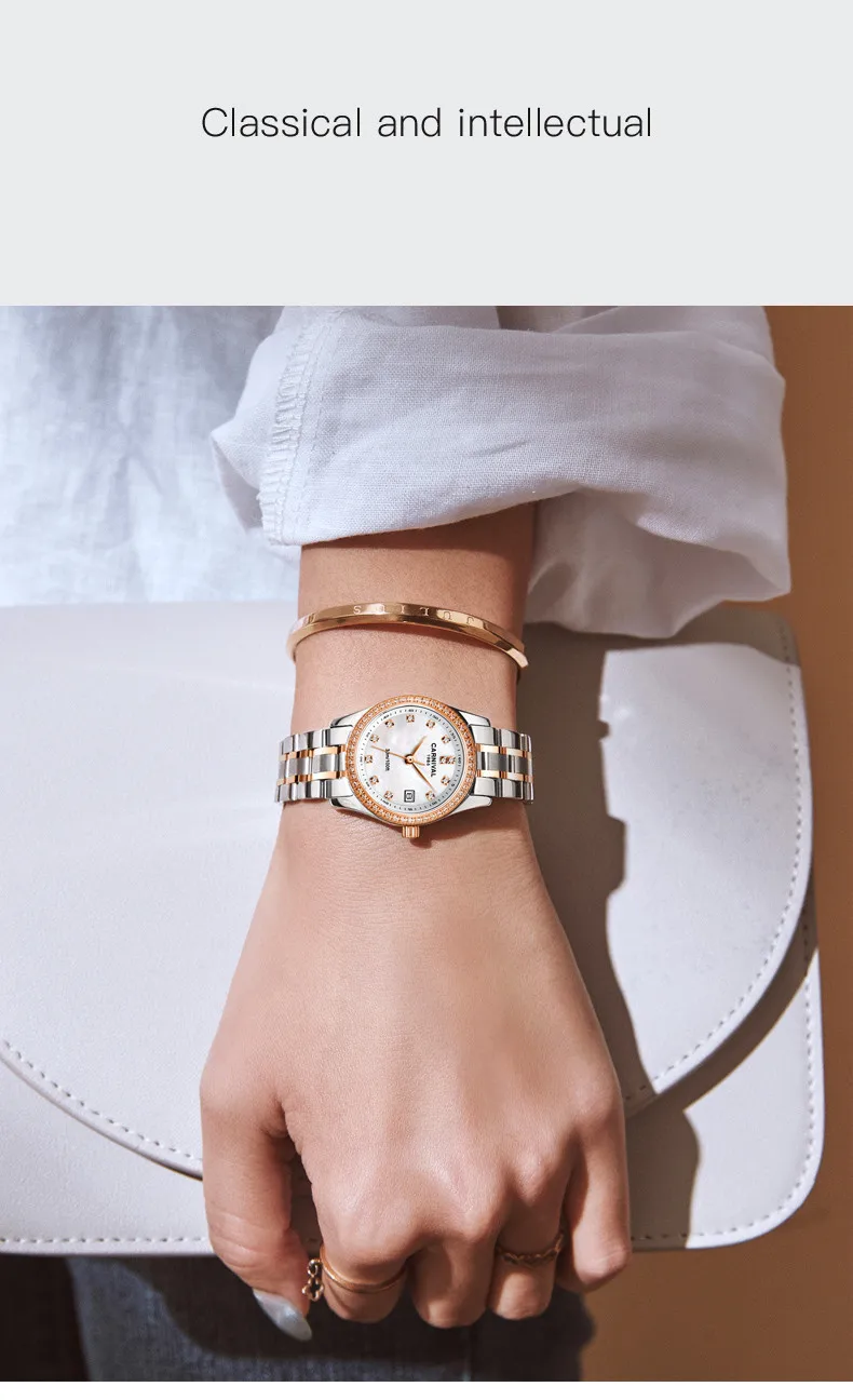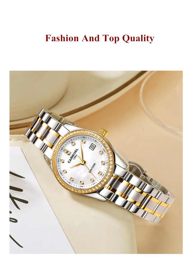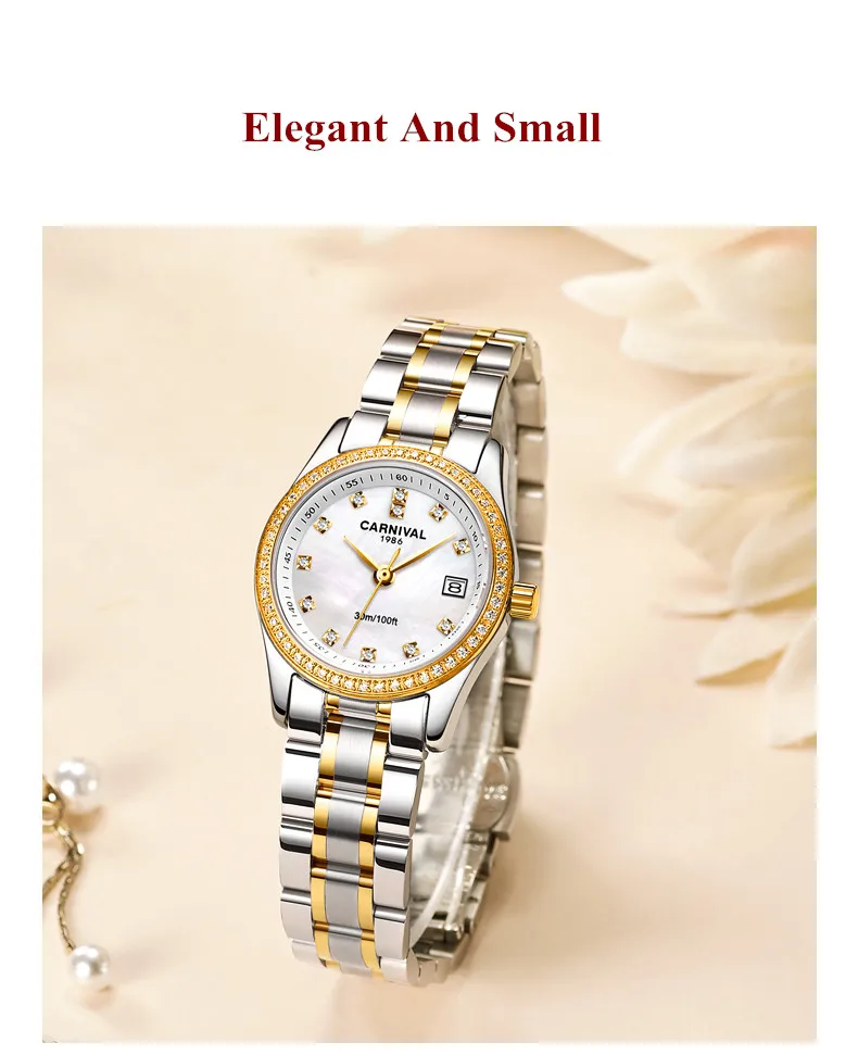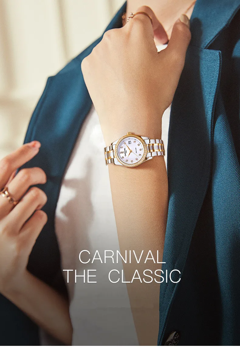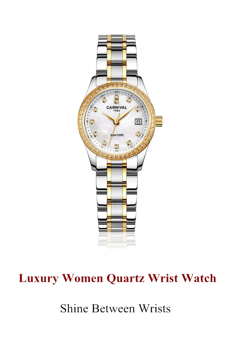 Relogio Feminino CARNIVAL женские часы Лидирующий бренд роскошные часы-браслет женские водонепроницаемые золотые кварцевые наручные часы Saat 2021
