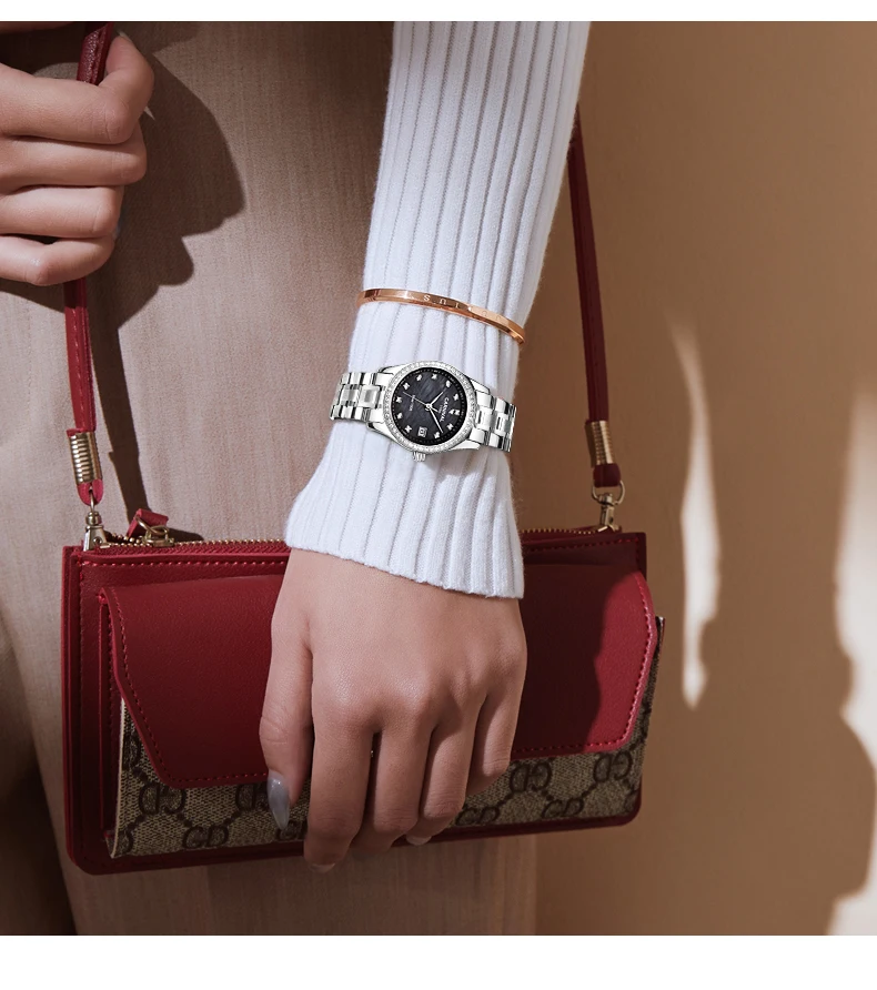 Примечание:Если вы покупаете одни часы, то есть один маленький серебряный и один маленький розовый золотой (Случайная Доставка) браслет для женщин, как показано ниже, для бесплатного подарка.