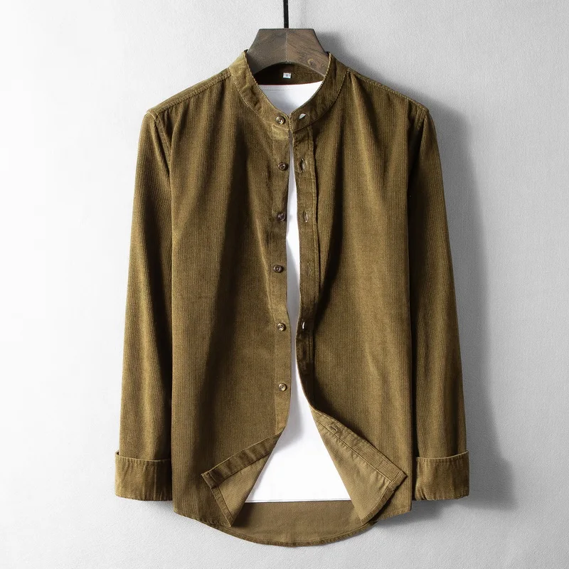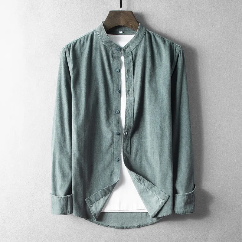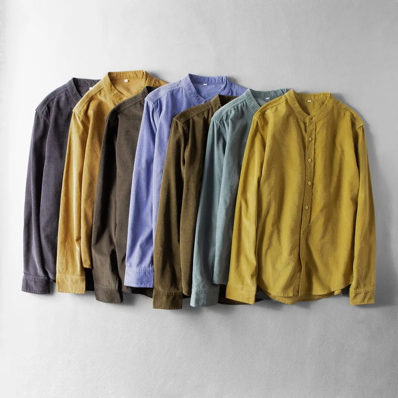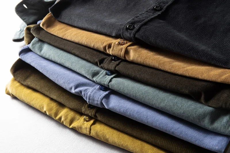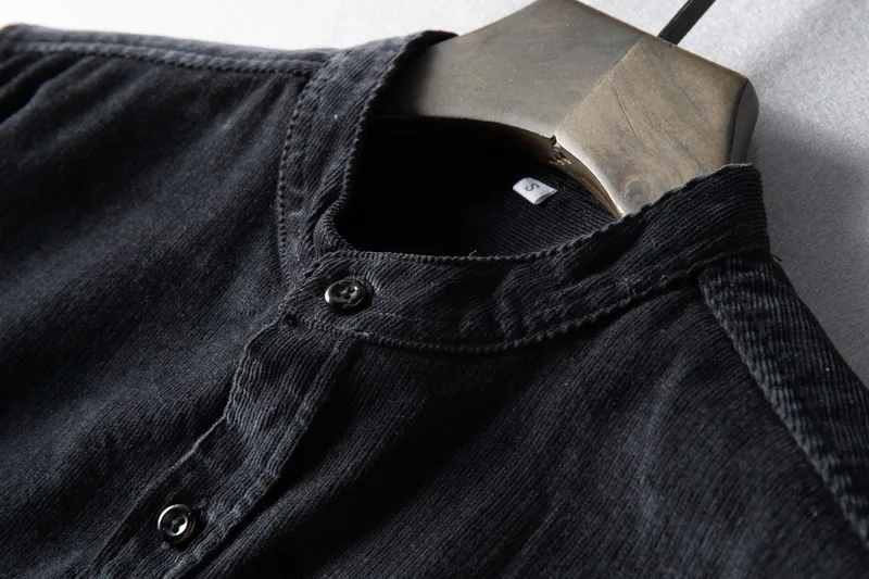Осенне-зимняя Новая повседневная хлопковая рубашка с воротником-стойкой, мужские вельветовые рубашки с длинным рукавом, брендовая модная мужская рубашка, мужские рубашки