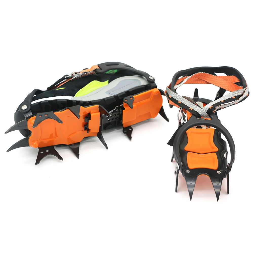 Высокопрочная марганцевая сталь, с вакуумной термической обработкой и процессом закалки, отличается высокой твердостью и прочностью, которые увеличивают тягу при ходьбе и лазании по снегу, чтобы снизить риск падения.