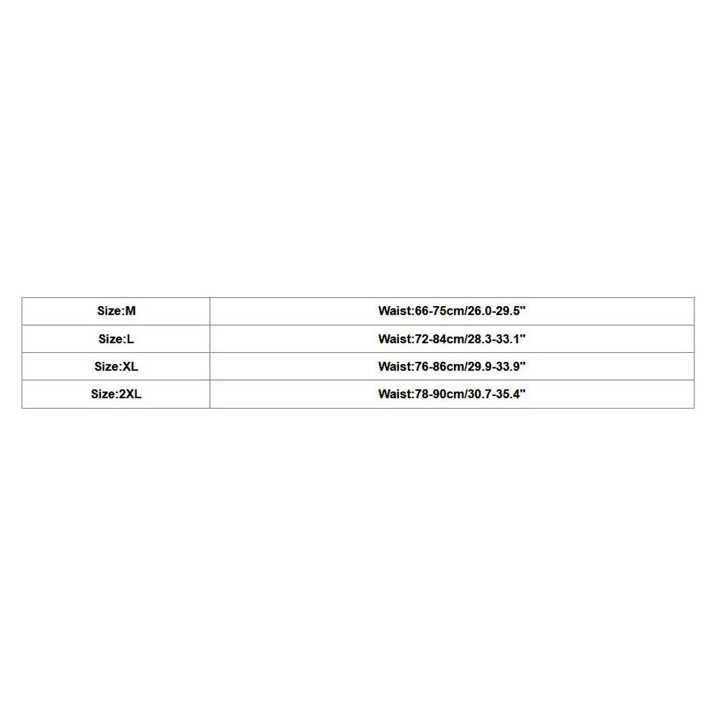 Size Waist M 66-75cm/26.0-29.5" L 72-84cm/28.3-33.1" XL 76-86cm/29.9-33.9" 2XL 78-90cm/30.7-35.4"
