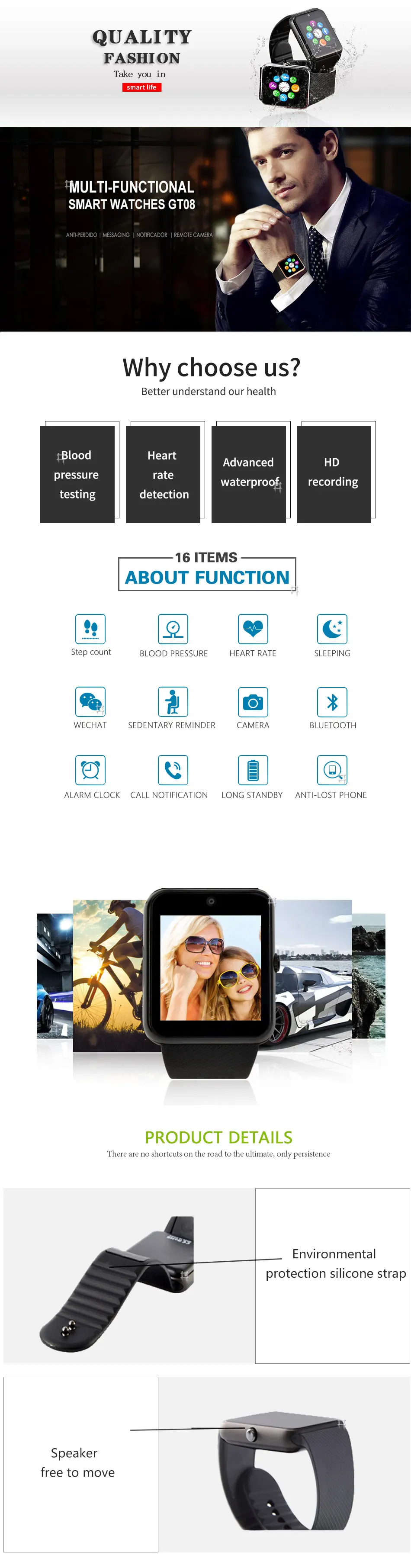 Новые Bluetooth Смарт-часы для мужчин с сенсорным экраном большая батарея поддержка TF sim-карты камера GT08 Смарт-часы для телефона Android
