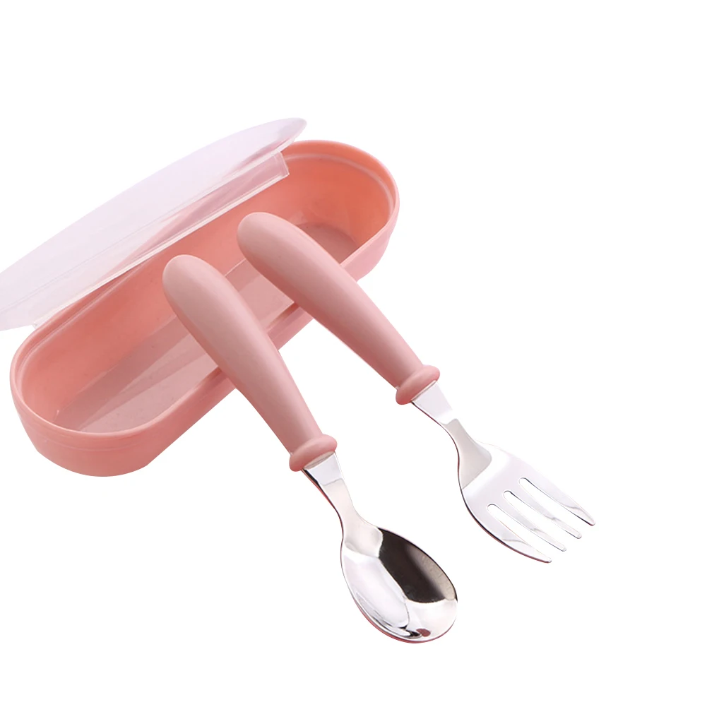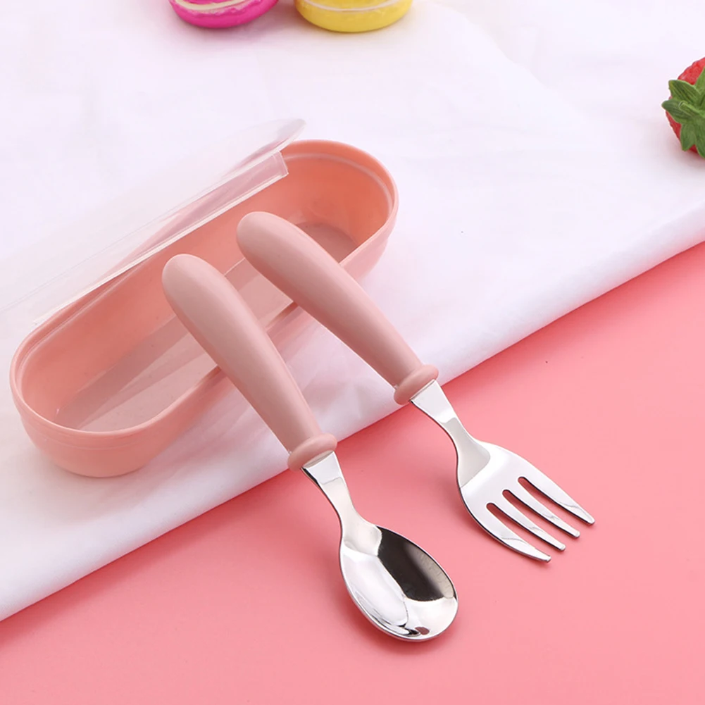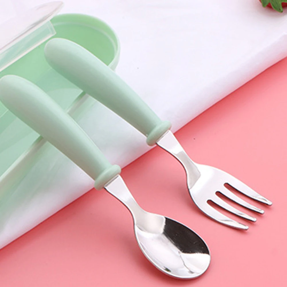3 шт./компл., милые детские ложки из нержавеющей стали, вилки, ящик для хранения, посуда для кормления