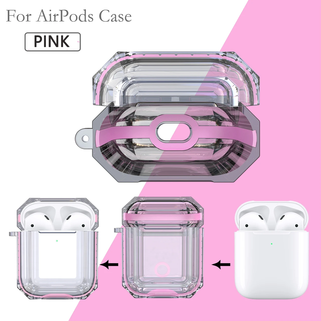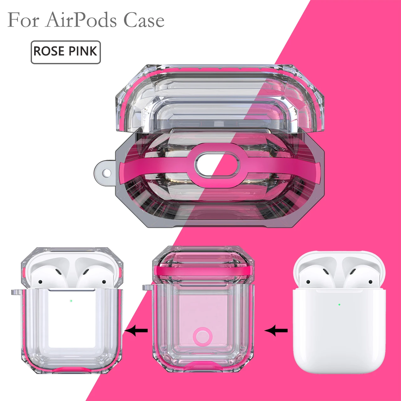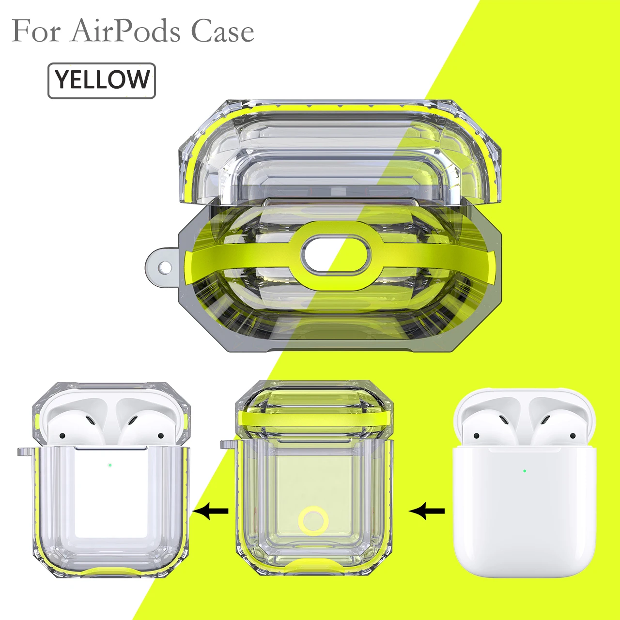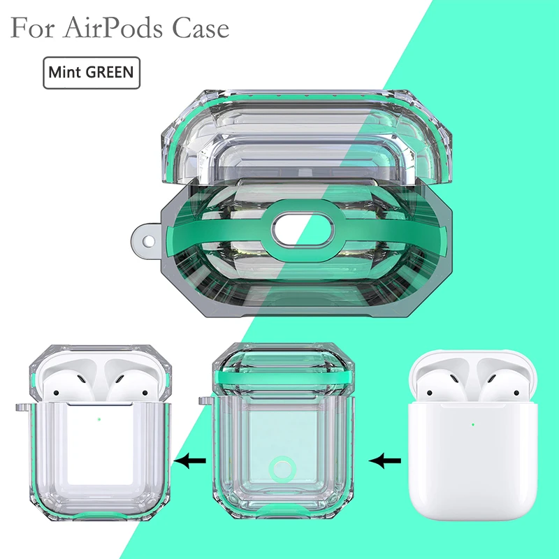 Для, Airpods,1/2, наушники, коробка, чехол, чехол, ударопрочный, защита, крышка, высокий, прозрачный, мягкий, TPR, наушники, защитный, чехол