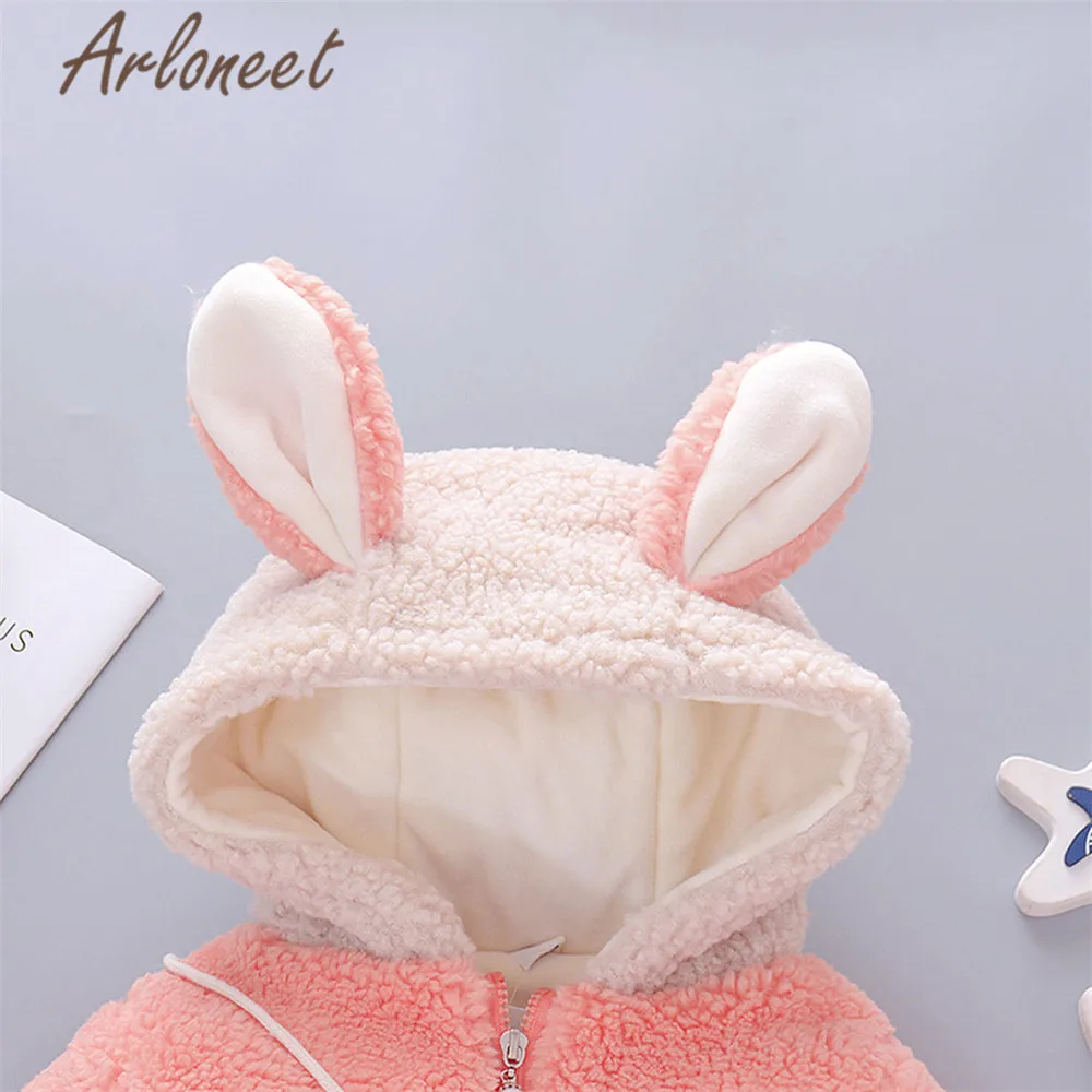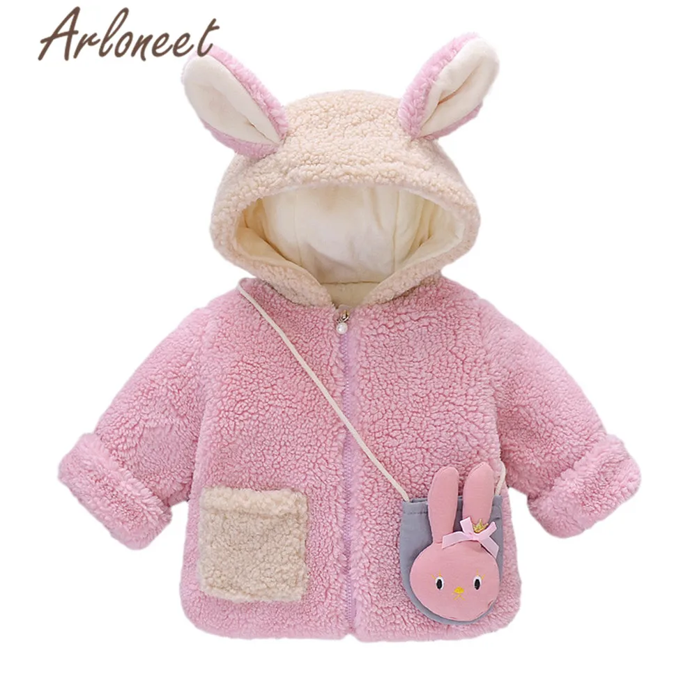ARLONEET Cartoon Coat Baby Girls Warm Winter Thick Coat zipper rabbit Bag 2pcs Hooded Outerwear Cotton Jacket Baby girls coat