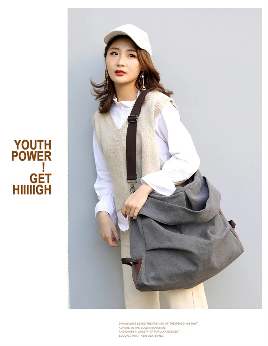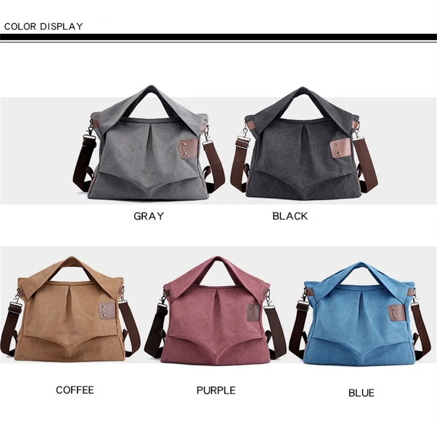2019 однотонная женская сумка через плечо, модная женская Холщовая Сумка для отдыха, плиссированная мягкая и дышащая Дорожная сумка на короткие расстояния